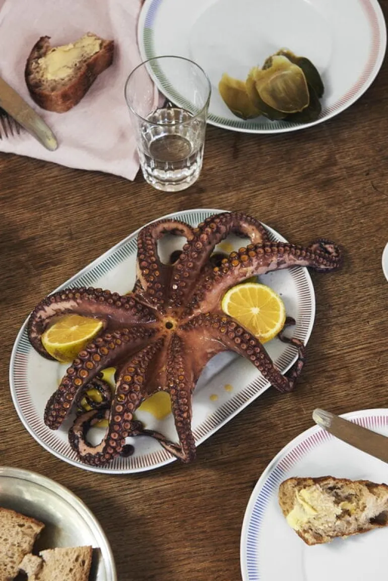 Uppläggningsfatet PC från 1616 / arita japan är smyckat med ett vackert randigt motiv i flera olika färger, som nästan ser ut som skuggningar i en färgteckning. Det ovala uppläggningsfatet kan med fördel användas till servering, antingen till festligt dukade bord vid särskilda tillfällen eller för att liva upp helt vanliga vardagsmåltider.