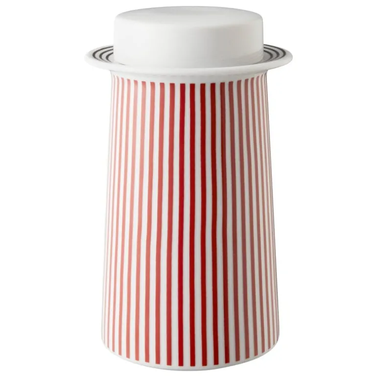 Teburken PC från 1616 / arita japan är smyckad med ett vackert, rödrandigt motiv samt två svarta ringar runt öppningen. Keramikburken är perfekt att förvara teblad i, men kan även användas till socker, godis och lite allt möjligt.