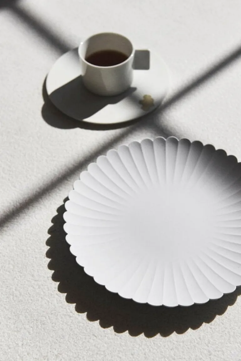 Tallriken TY Palace 220 från 1616 / arita japan är en vacker skönhet som charmar alla. Porslinstallriken påminner om ett snäckskal eller en fullt utslagen blomma med sköra kronblad – det vackra utseendet förvandlar din dukning till ett poetiskt konstverk. Designern heter Teruhiro Yanagihara och tallriken formgavs ursprungligen för Palace Hotel Tokyo, men den passar lika bra i ett vanligt kök, till vardags och till fest.