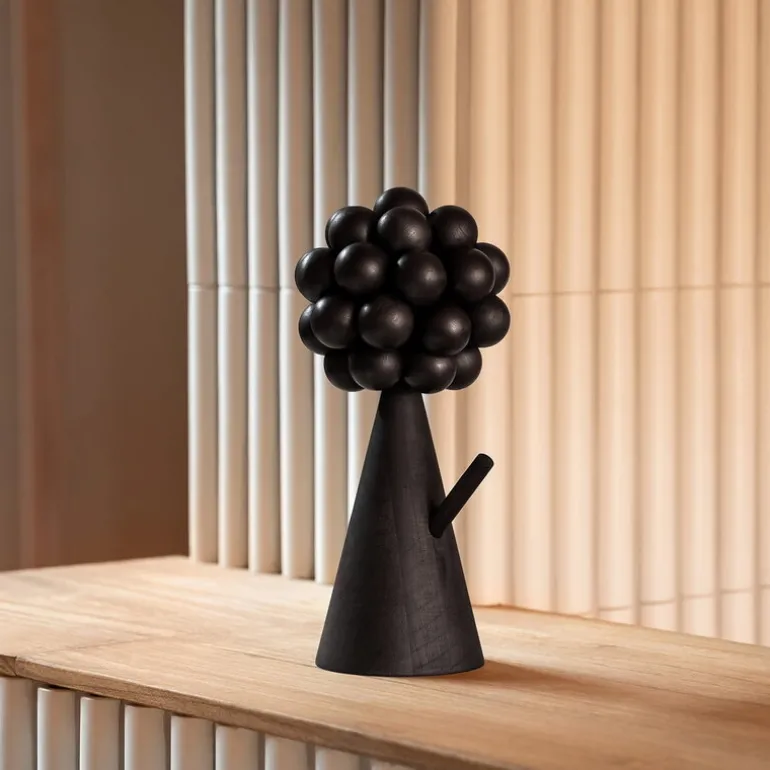 Aarikkas skulptur Mänty stimulerar sinnena och berikar ditt hem med en touch av nordiska skogar. Den här unika träskulpturen har fått sitt namn efter det finska ordet för tall och är mer än bara ett vackert konstföremål – den fungerar även som doftspridare. Tallens konformade stam reser sig stolt upp mot kronan, som består av släta, svarvade träpärlor, Aarikkas signaturelement. När du ska använda skulpturen som doftspridare behöver du bara applicera några droppar av den medföljande eteriska oljan under den översta pärlan för att sedan kunna njuta av den uppfriskande doften av nordisk skog.