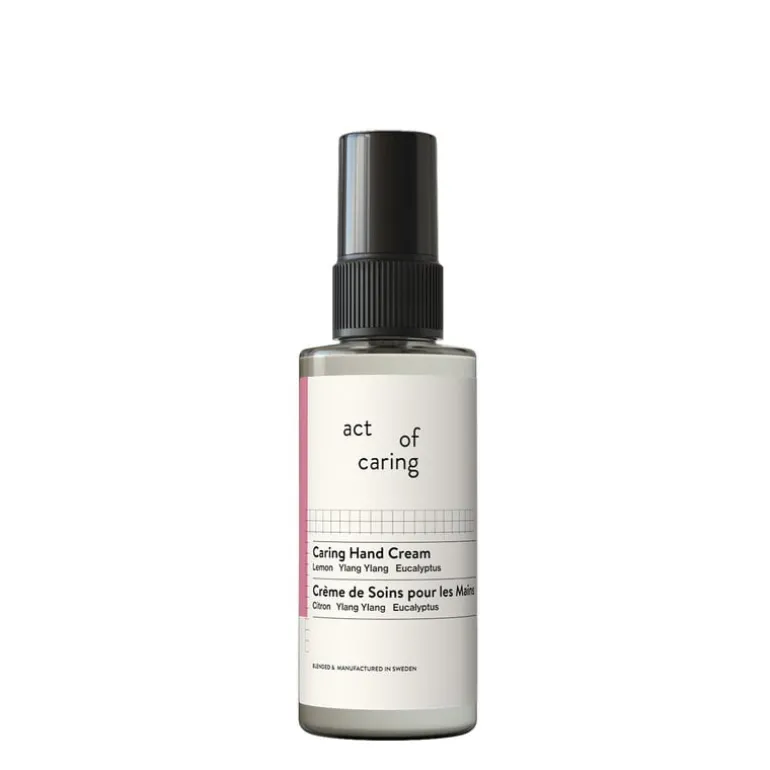 Act of Carings Caring Handkräm är en mild och närande produkt för händer som behöver lite extra omvårdnad. En lyxig blandning av solrosolja, sheasmör och olivolja gör att handkrämen återfuktar och mjukgör torr hud, medan naturliga extrakt av citron, ylang-ylang och eukalyptus ger dina händer en frisk och uppfriskande doft. Tillverkad i Sverige, är Act of Carings produkter helt växtbaserade, icke-toxiska och doftsatta med naturliga eteriska oljor, vilket förvandlar vardagliga rutiner till något exceptionellt.