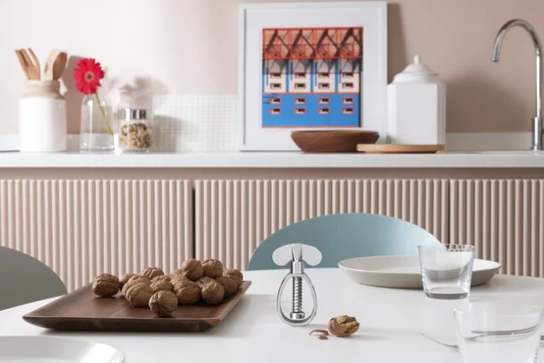 Alessis nötknäppare Farfalla skapades av den italienska designlegenden Enzo Mari på 1990-talet och fick sitt namn efter det italienska ordet för fjäril som en referens till formen på dess handtag. Den lekfulla men strikt funktionella designen på den metalliska nötknäpparen är ett utmärkt exempel på Maris designfilosofi: allt överflödigt har tagits bort för att tydliggöra objektets syfte, raison d’être.