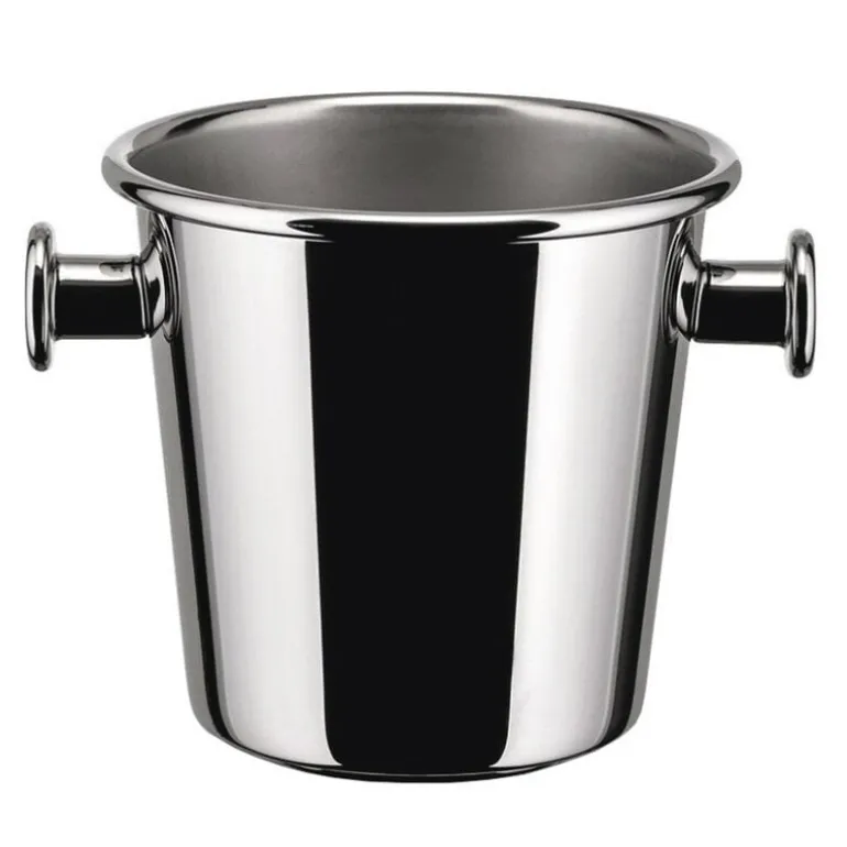 Alessis ishink håller iskuberna kalla med stil. Hinken har praktiska handtag så att den enkelt kan tas med till matbordet eller till festen på uteplatsen i trädgården. Ishinken, som har formgivits av Ettore Sottsass, är tillverkad i rostfritt stål med spegelpolerad glans som känns lika lyxig varje gång – till vardagsstunder, till cocktailpartyn och till bord dukade för ett speciellt tillfälle.