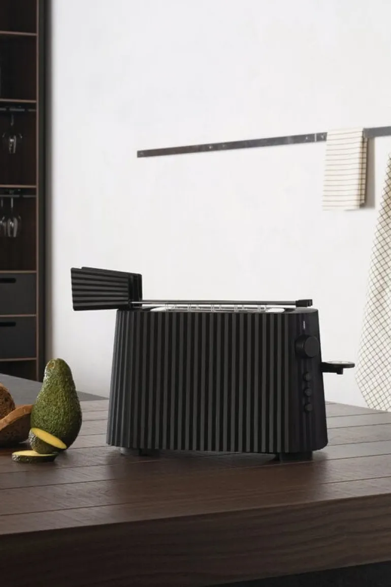 Alessis brödrost Plissé har en dynamisk, skulptural design som inspirerats av mode och arkitektur. Brödrosten är designad av Michele De Lucchi och har en unik ytstruktur som liknar plisserat tyg – den är helt enkelt för vacker för att gömmas undan i köksskåpet!