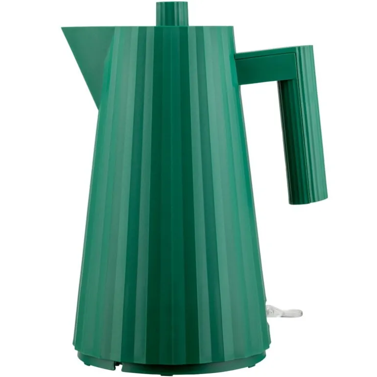 Vattenkokaren Plissé från Alessi har hämtat sin inspiration från mode- och arkitekturvärlden. Dess tredimensionella yta påminner om veckad tyg och har en dynamisk, skulptural silhuett. Plissé designades av Michele De Lucchi år 2018 och är perfekt för både att koka och servera hett vatten – tack vare den termiskt isolerade basen kan du säkert placera vattenkokaren på vilket bord som helst. Vattenkokaren är utrustad med ett kalkfilter och en säkerhetsbrytare som automatiskt stänger av strömmen om det inte finns tillräckligt med vatten inuti. Värmeelementet är dolt i basen för enklare rengöring.