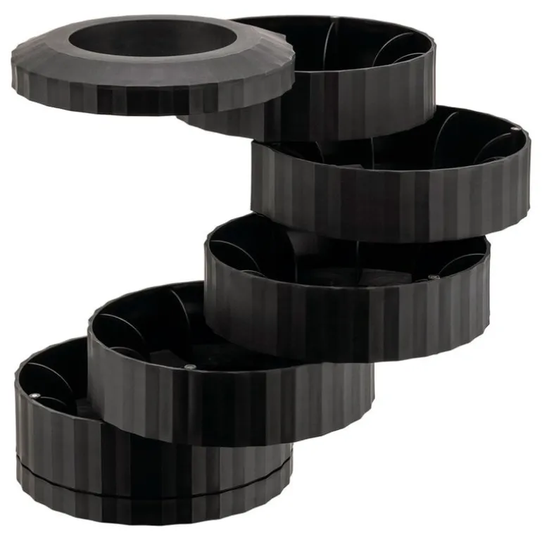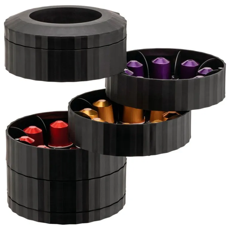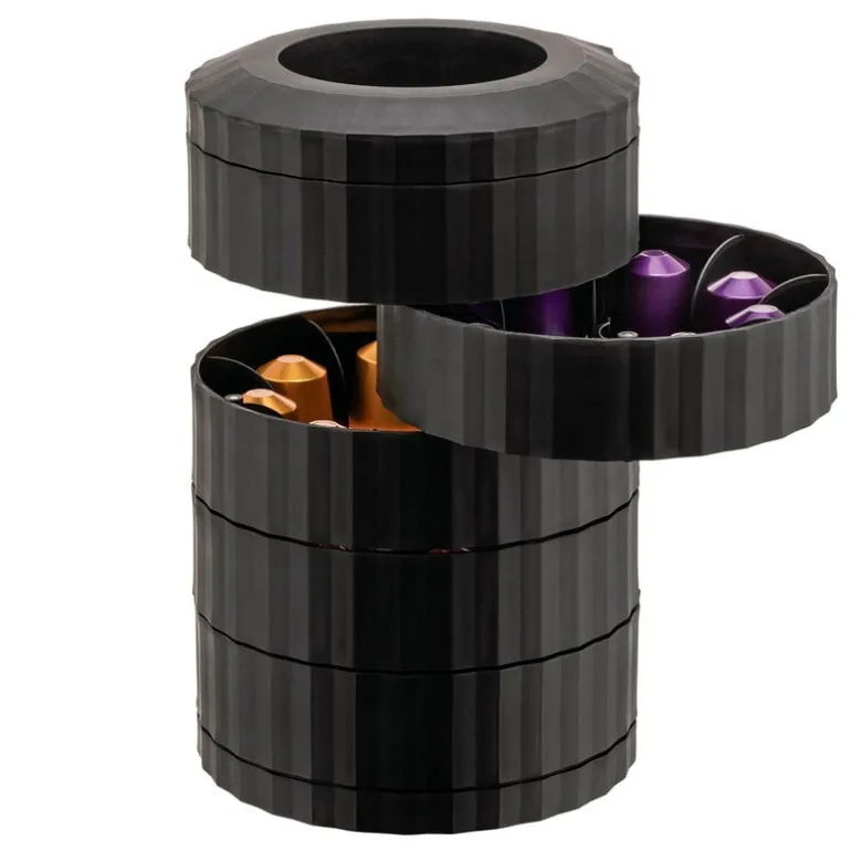 Hållaren har fem fack och kan rymma upp till 40 espressokapslar, som du kan sortera efter kaffesort – eller blanda dem helt enkelt, om du föredrar att bli lite överraskad på morgonen! Beroende på din estetiska preferens kan du hålla facken stängda för en elegant och skulptural look, eller öppna upp dem helt och hållet, så att hållaren ser ut som en modern byggnad. Det är ingen överraskning att skaparen av Plissé-kollektionen, Michele De Lucchi, har gjort sig ett namn som både designer och arkitekt.