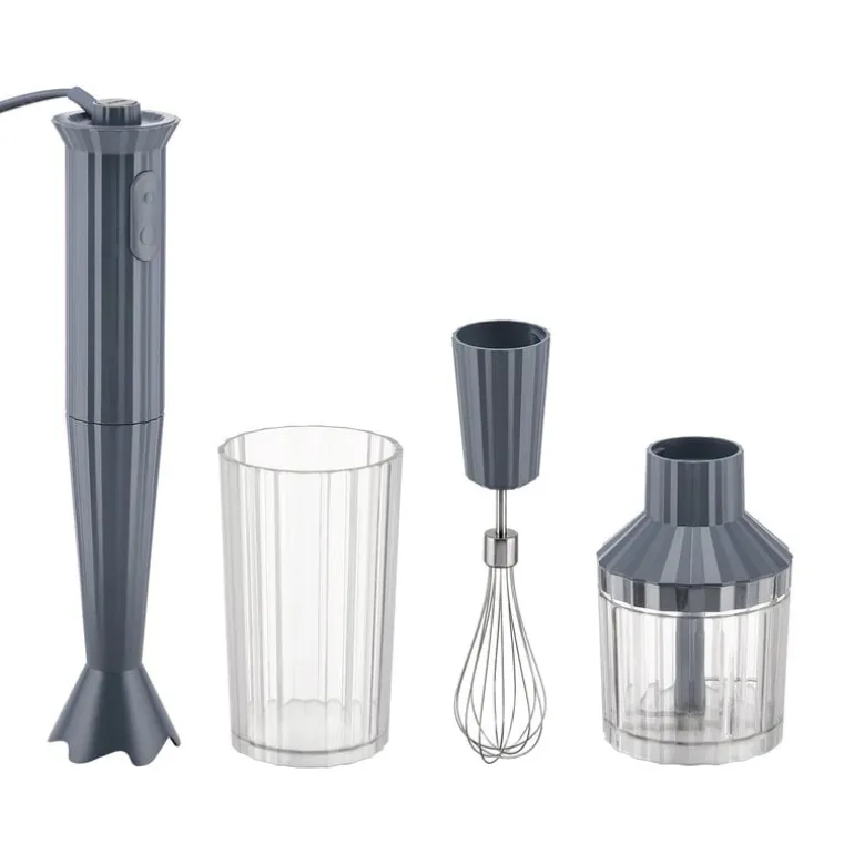 Alessis stavmixer Plissé har en dynamisk, skulptural design som inspirerats av mode och arkitektur. Stavmixern är designad av Michele De Lucchi och har en unik ytstruktur som liknar plisserat tyg – den är helt enkelt för vacker för att gömmas undan i köksskåpet!