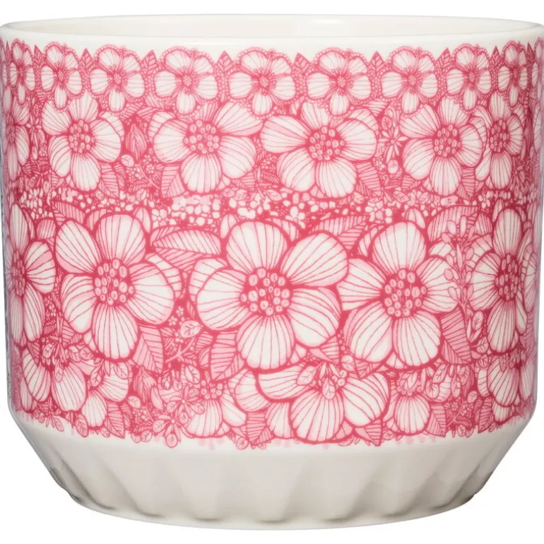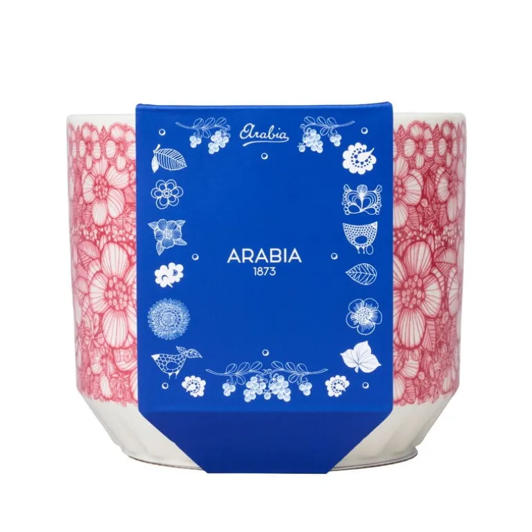 Arabias Huvila-vas är smyckad med delikata rosa blommor som ritats av Heini Riitahuhta. Huvila betyder villa på finska, och det nostalgiska blommönstret påminner om barndomens sommardagar hemma hos farmor. Med sina influenser från 1920-talsdekor för den moderna Huvila-kollektionen vidare Arabias dekortradition på ett charmerande sätt.