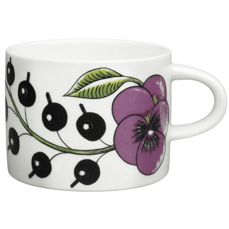 Paratiisi-koppen från Arabia är smyckad med lila och grönt som ger en fräsch, frodig känsla till blommönstret.