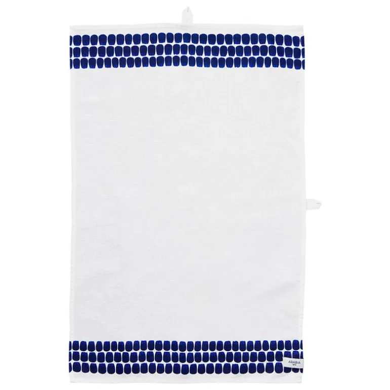 Arabias Tuokio-kökshandduk har ett mönster som är både modernt och nostalgiskt, fint och starkt. Namnet på mönstret, Tuokio, betyder ”ögonblick” på finska, och beskriver intensiteten i ett speciellt och minnesvärt ögonblick. Designbyrån Helorinne & Kallio har inspirerats av traditionell handmålad arabisk keramik när de utformat detaljerna i Tuokio-dekorationen. Det ger mönstret en rytm där man känner av den starka närvaron av penseldragen och konstnärens hantverk.