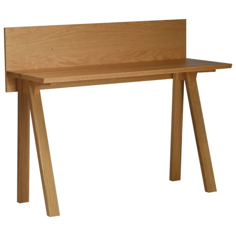 Det massiva träskrivbordet Sagyo har vackra lutande ben och en bakplatta för extra lugn och avskildhet. Om du vill kan du komplettera designen med en separat såld magnetisk hylla och spegel – den lilla hyllan lägger till praktiskt förvaringsutrymme ovanför skrivbordet, och den runda spegeln gör att du kan använda din arbetsstation också som ett sminkbord.
