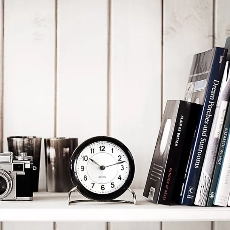 Väckarklockan AJ Station är en uppdaterad version av den eleganta bordsklockan som Arne Jacobsen designade 1939. Utöver den grafiska urtavlan, som inspirerats av den klocka som Jacobsen formgav för danska elektroniktillverkaren Lauritz Knudsen år 1941, och den eleganta metallbasen som refererar till hans ikoniska stolsdesign, kommer klockan med nya funktioner som en snooze-funktion och en ljussensor. Väckarklockan AJ Station är en bra presentidé och ett elegant tillskott till alla nattduksbord.