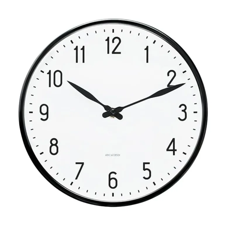 Väggklockan AJ Station designades av arkitekten Arne Jacobsen för den danska elektroniktillverkaren Lauritz Knudsen 1941. Tillsammans bildar den enkla numreringen, de vackra visarna och det svarta aluminiumhöljet ett vackert väggur, som även går väl ihop med moderna interiörer. Väggklockan AJ Station finns i tre storlekar.
