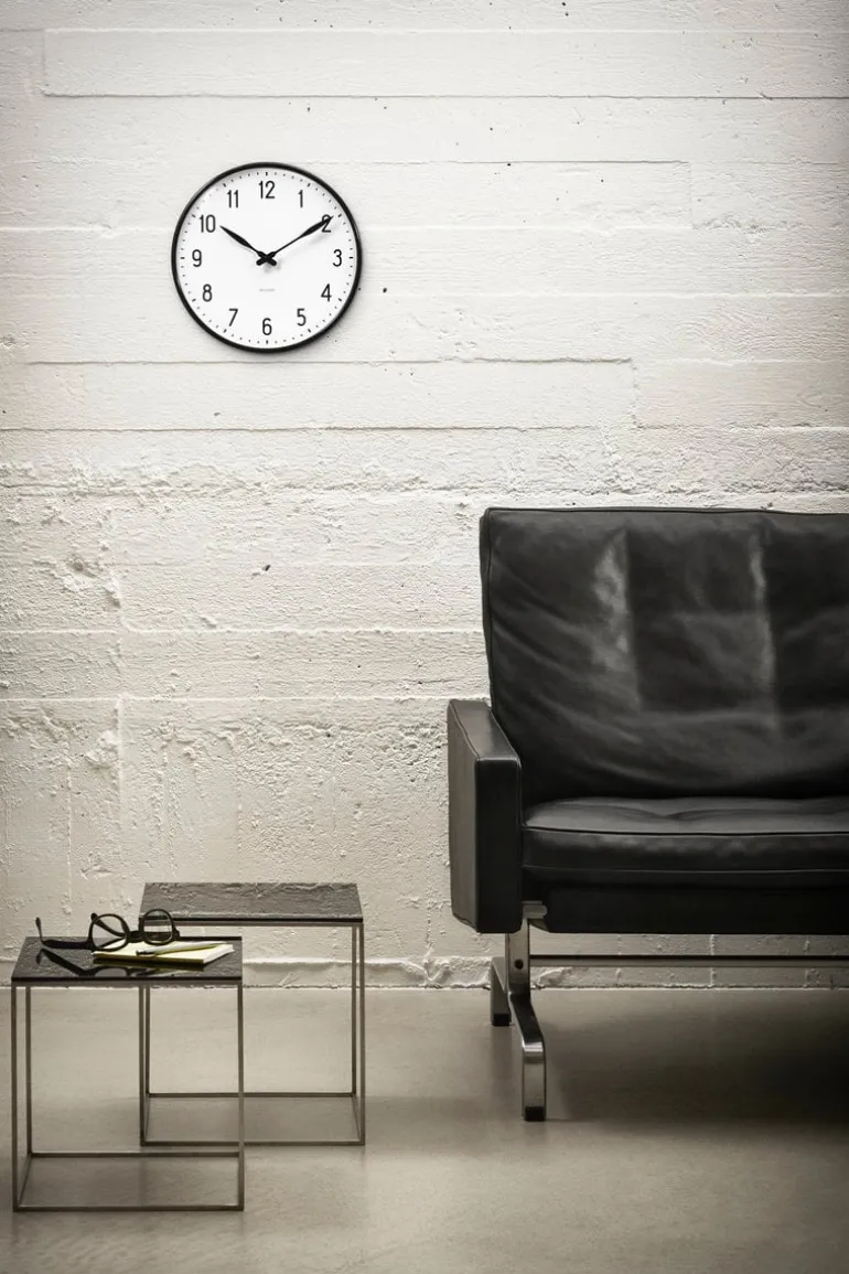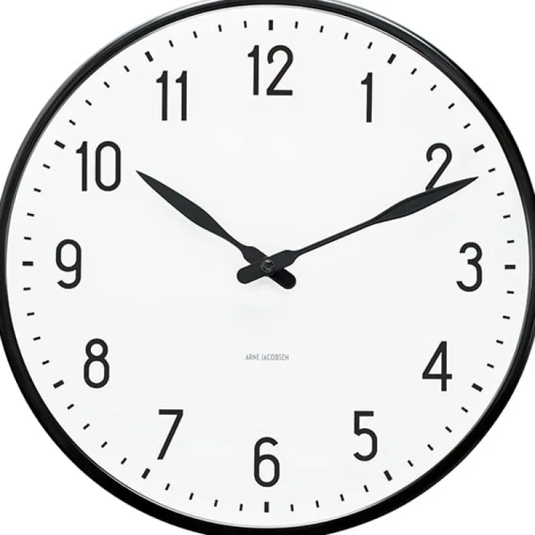 Väggklockan AJ Station designades av arkitekten Arne Jacobsen för den danska elektroniktillverkaren Lauritz Knudsen 1941. Tillsammans bildar den enkla numreringen, de vackra visarna och det svarta aluminiumhöljet ett vackert väggur, som även går väl ihop med moderna interiörer. Väggklockan AJ Station finns i tre storlekar.