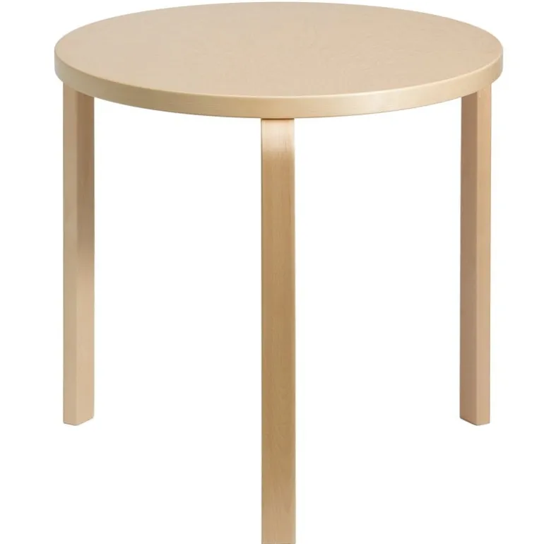 Arteks bord 90B från 1935 är en av Alvar Aaltos tidlösa designklassiker. Huvudmaterialet i det här runda matbordet med tre ben är massiv björk.