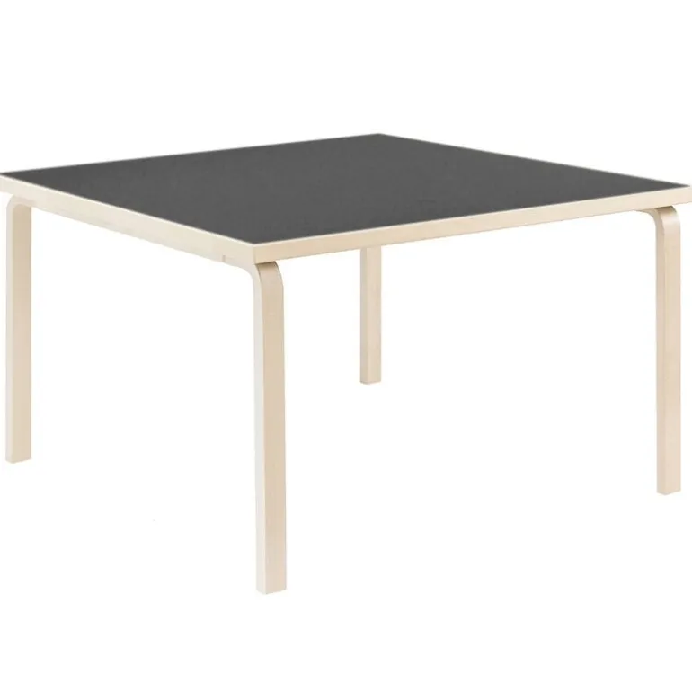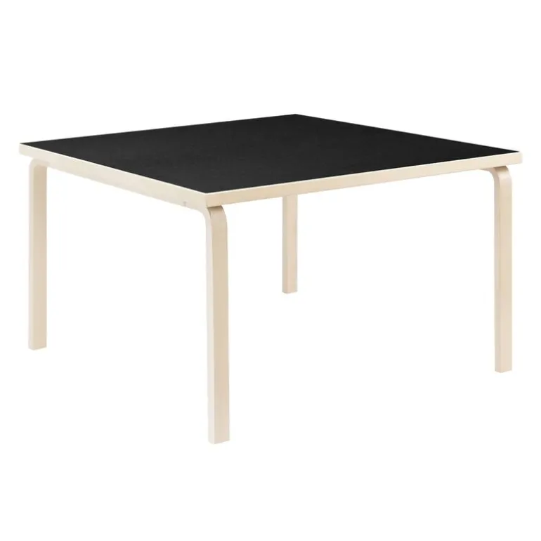 Arteks bord 84, formgivet av Alvar Aalto 1933, är ett rymligt och praktiskt matbord i trä, som även kan användas som skrivbord eller mötesbord. Benen och kanterna på bordet Aalto 84 är gjorda i massiv björk, medan ovansidan på den fyrkantiga bordsskivan består av mjukt, matt linoleum – ett material som är idealiskt till skrivbord. Tillverkad i Finland.