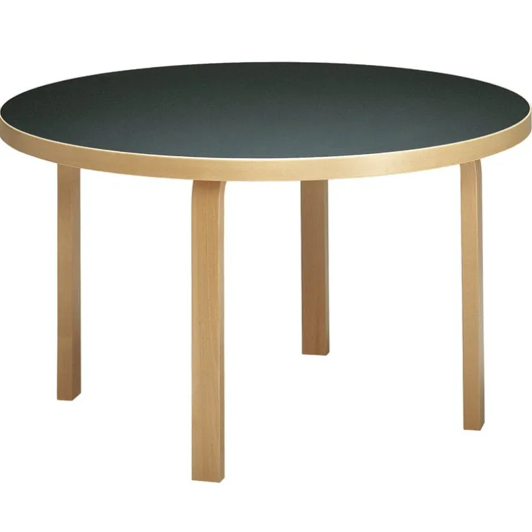 Bord 91 bär Alvar Aaltos tidlösa design från 1935. Huvudmaterialet i det här runda matbordet är massiv björk med en linoleumklädd bordsskiva.