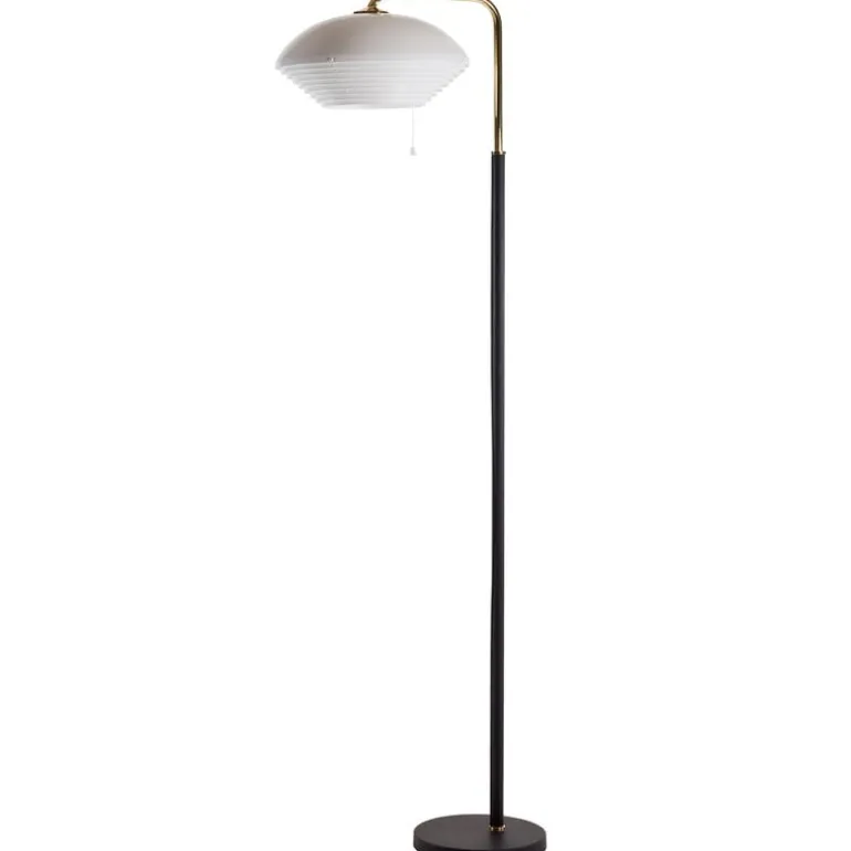 Arteks golvlampa A811 består av en välbalanserad kombination av olika färger och material: stativet är gjort av polerad mässing och svart läder, medan skärmen har tunna metallremsor varvade i lager som får lampan att avge ett varmt, dämpat sken. A811 lanserades år 1965 och har designats av Alvar Aalto. Dess utseende har likheter med lampkollektionen som Aalto designade på 1950-talet för Folkpensionsanstalten i Helsingfors, och med sin tidlösa elegans kan den enkelt komplettera inredningen i moderna hem såväl som offentliga miljöer.