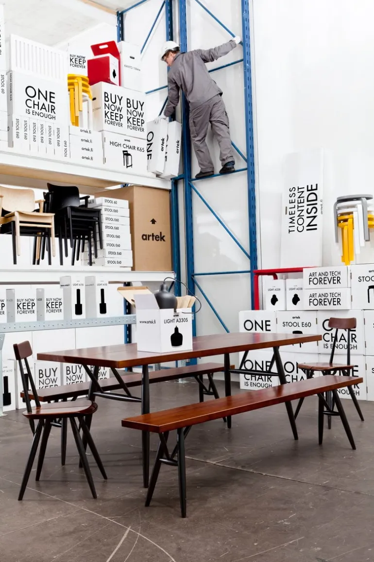Pall 60, formgiven av Alvar Aalto för Artek, är en av ikonerna inom finsk möbeldesign. Den trebenta Aalto-pallen är än idag en vacker, genialisk produkt, vars enkla form alltid förblir modern. Pall 60 är perfekt att ha som extra sittplats och kan även användas som litet bord, exempelvis bredvid fåtöljen eller sängen. Pallarna kan enkelt staplas till ett vackert torn när de inte används.