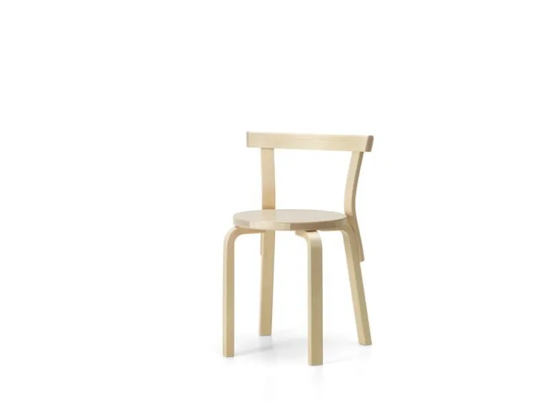 Stol nummer 68 från Artek är lätt att identifiera som en designklassiker skapad av Alvar Aalto. Den har den typiska runda sitsen och de karaktäristiska L-benen som är fästa direkt på sitsen. Det som skiljer Stol 68 från andra Aalto-stolar är det tunnare ryggstödet. Stol 68 är också stapelbar, upp till fyra stolar kan staplas för att spara utrymme.
