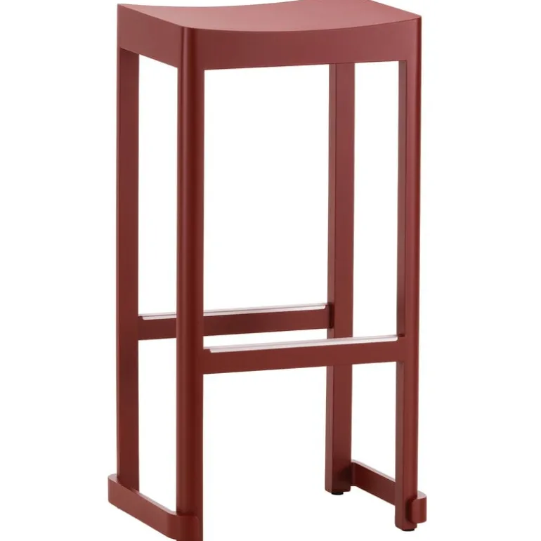Stolen Atelier av Artek har en balanserad och lätt konstruktion som passar bra på restauranger och kaféer, men även för privat användning. Den svagt böjda sitsen och metalldelarna som sitter mellan frambenen ger barstolen en avslappnad känsla och fotstöden har förstärkts med extra aluminiuminlägg för extra stabilitet.