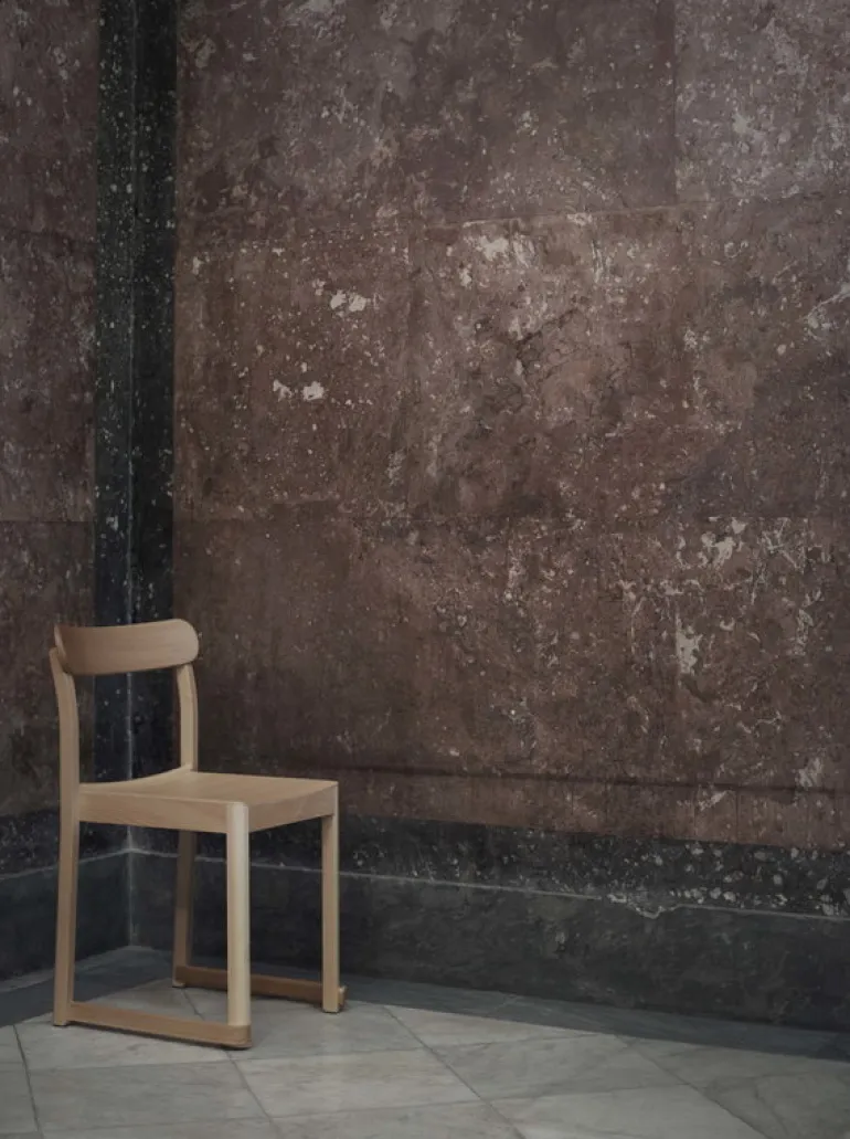 Arteks Atelier-stol har ett trivsamt utseende och balanserade proportioner som passar lika bra på restauranger och i hörsalar som vid middagsbordet. Atelier-stolen föddes 2018 när svenska TAF Studio anlitades för att designa inredningen till Nationalmuseum i Stockholms nya restaurang – stolen fick sitt namn på grund av att matsalen påminner om en konstnärsateljé. Finska Artek valdes som tillverkare tack vare sin höga kvalitet och erfarenhet av trä. Atelier påminner om en matstol som designades av svenske arkitekten Sven Markelius i början av 1900-talet, och det mjukt böjda ryggstödet och stängerna mellan frambenen ger stolen en lättsam känsla. Den lätta stapelbara stolen passar bra i offentliga och privata utrymmen. Atelier har tillverkats i Italien från lokala trädslag.