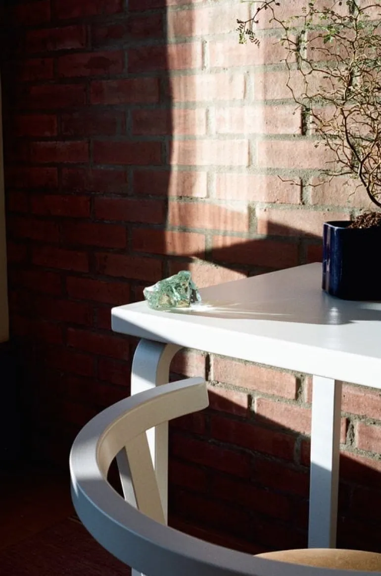 | Riihitie-krukorna, som Aino Aalto designade till familjens hem i Helsingfors, ingick i den samling som Aalto presenterade på världsutställningen i Paris 1937. 80 år senare lanserade Artek keramikkrukorna, som är uppkallade efter gatuadressen där de först skapades och användes, för att fira hundraårsjubileet av Finlands självständighet. Riihitie-krukorna är handgjorda, och inspirationen till den blå och vita färgen är hämtad från keramikplattorna i Muuratsalo Experimenthus, som också är känt som familjens sommarställe. Krukornas organiska och böljande design speglar Aaltos nära kontakt med naturen. |
