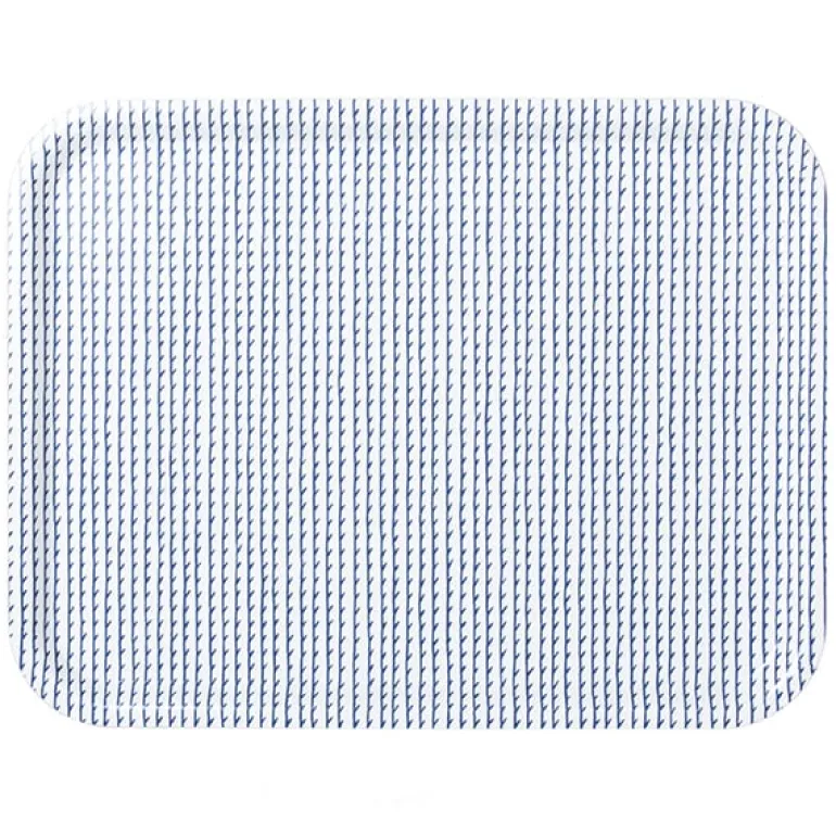 Rivi bricka, designad av Ronan och Erwan Bouroullec för Artek, kännetecknas av sitt unika textilmönster, som består av rader med långa, parallella linjer och fina detaljer. Den rektangulära brickan är tillverkad av laminerad plywood och papper.