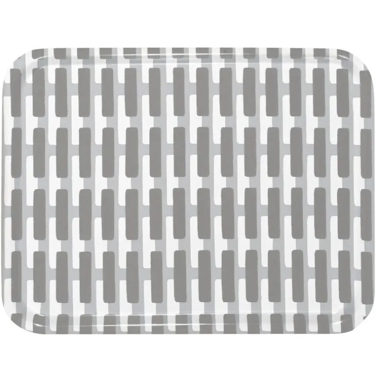 Arteks bricka Siena har ett vackert grafiskt mönster och designades av Alvar Aalto 1954. Den här versionen har smeknamnet ”Shadow Siena” och består av två överlappande färger som skapar intrycket av två skuggor som kastas över varandra. Den rektangulära brickan är tillverkad av laminerad plywood och papper.