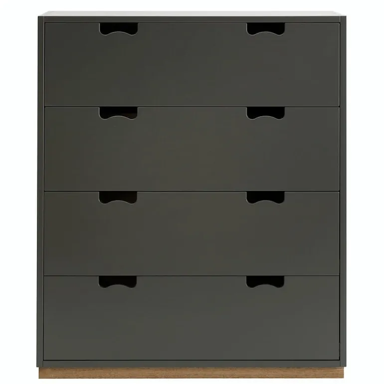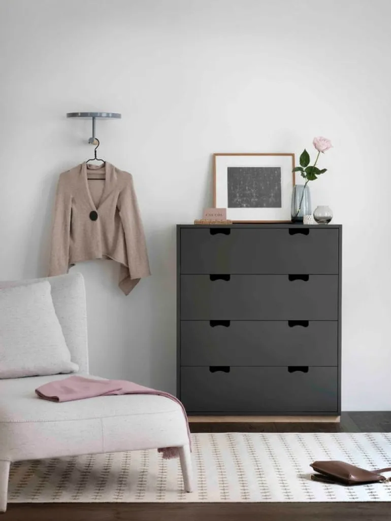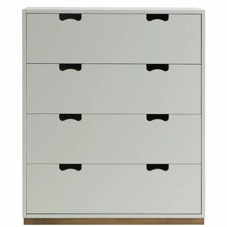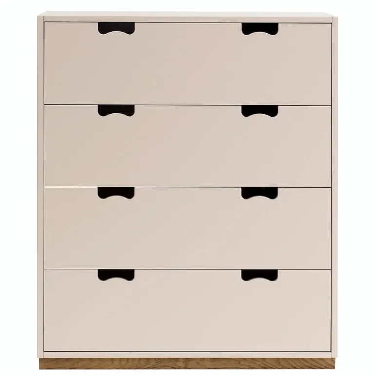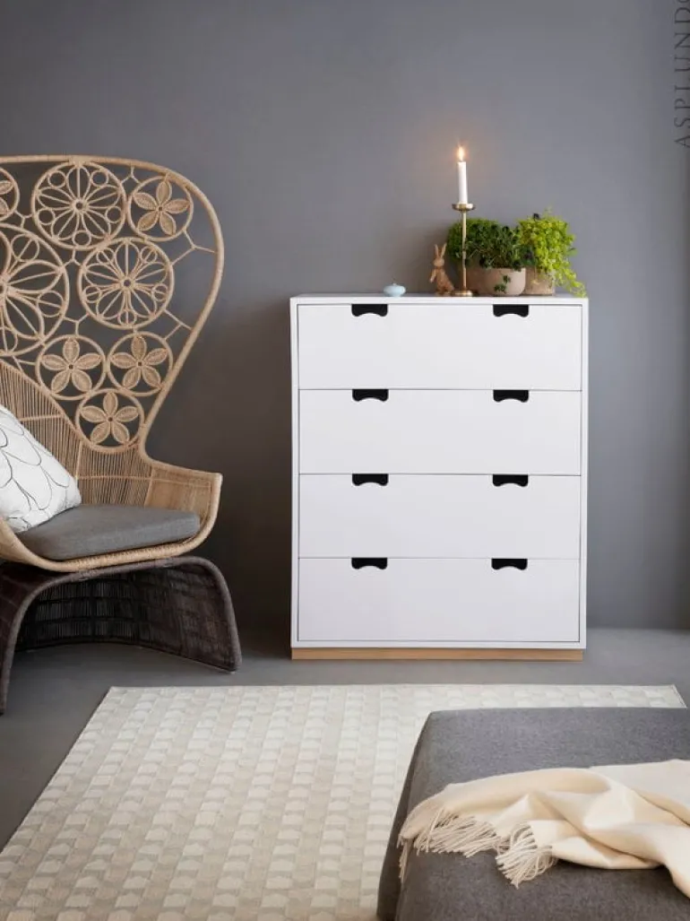 Byrån Snow A har fyra rymliga lådor där du exempelvis kan förvara kläder. Snow A och de andra förvaringslösningarna i serien är formgivna av svenskarna Jonas Bohlin och Thomas Sandell.