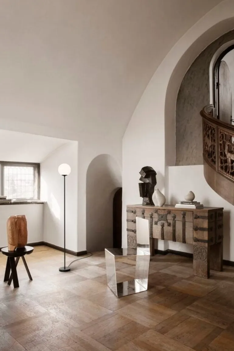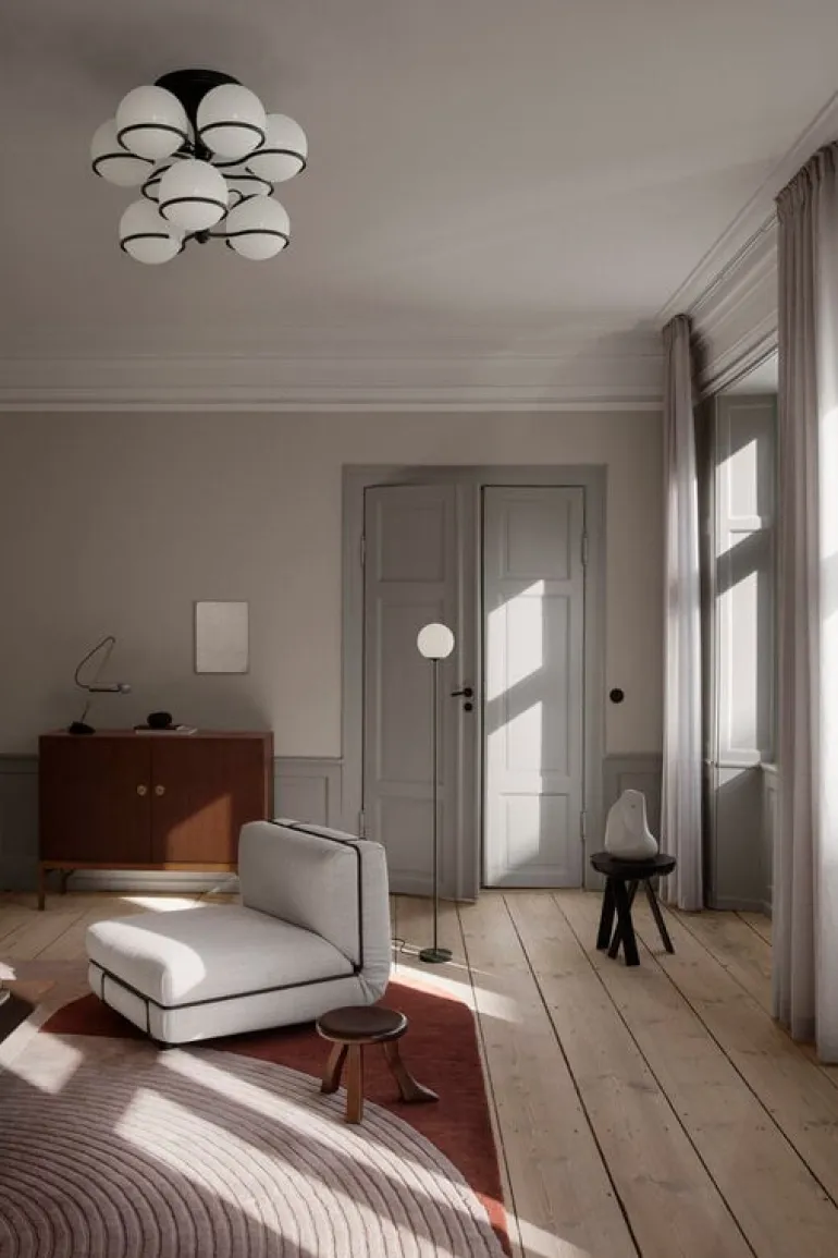 Golvlampan Model 1081 representerar den legendariske, italienske belysningsdesignern Gino Sarfattis rättframma stil i sin mest renodlade form. Ljuskällan består av en skärm i opalglas och ett 168 cm högt stativ som bär upp den. Med sitt enkla utförande och sin eleganta design har Model 1081 en given plats i många typer av utrymmen, allt från läshörnan i vardagsrummet till sovrummet.