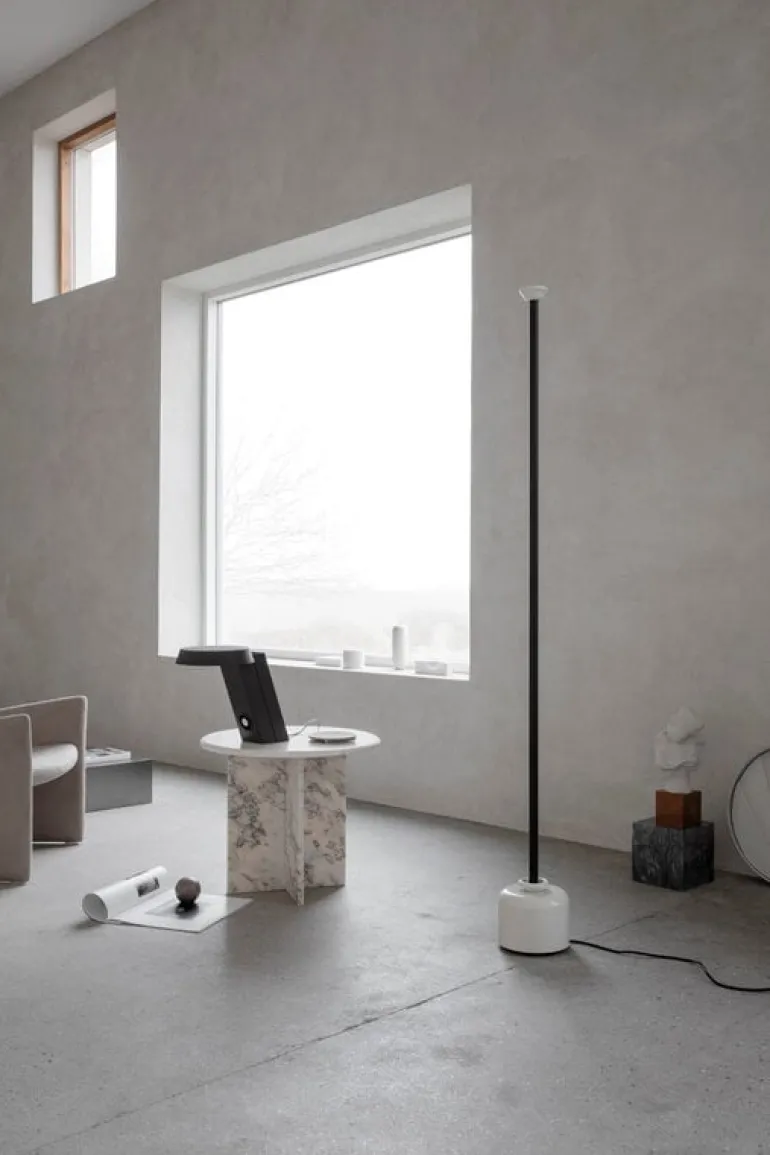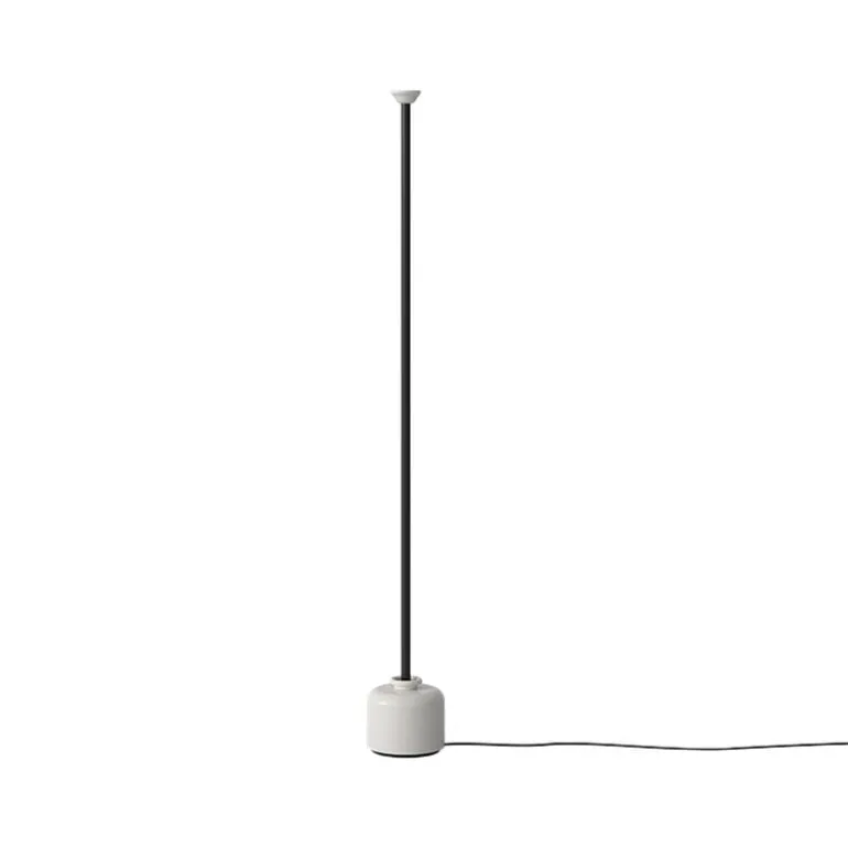 Asteps golvlampa Model 1095 är ett utmärkt exempel på den legendariske belysningsdesignern Gino Sarfattis karakteristiska estetik och förenklade stil i sin mest renodlade form. I golvlampan har de normala proportionerna kastats om: den kraftigaste delen på lampan är stålfoten, som bär upp ett smalt stativ i aluminium. I änden av stativet finns en elegant ljuskälla som avger ett indirekt ljus. I likhet med stativet är också den kupolformade skärmen tillverkad i aluminium.
