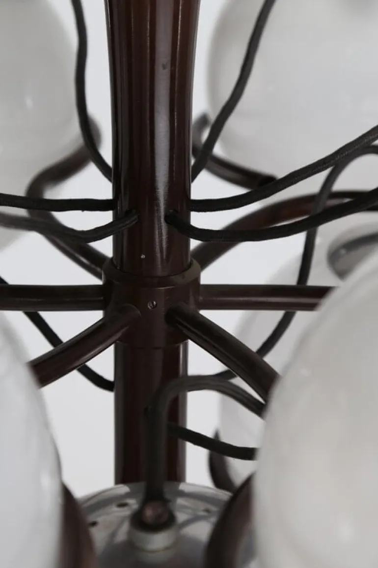 Taklampan Model 2042/9 från belysningsvarumärket Astep består av nio klotformade diffusers i opalglas som bärs upp av varsin stålring. Du kan placera glaskloten på ringarna åt båda hållen och på så sätt förändra lampans utseende och ljusintensitet. Den djärva men strömlinjeformade Model 2042 kommer att hitta sin plats i många olika miljöer, oavsett om det är ett vardagsrum, hall, kök eller sovrum.