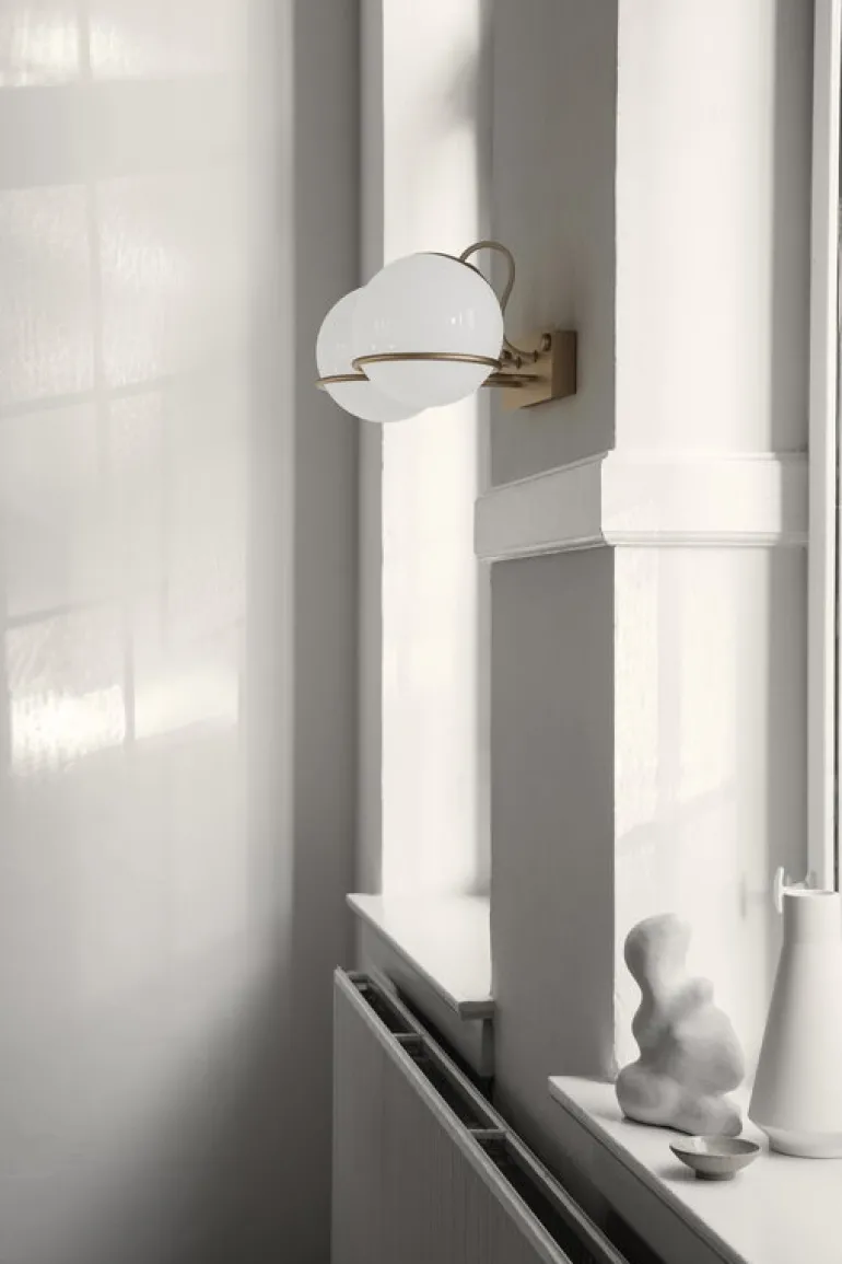 Vägglampan Model 237/2 från Astep är komponerad av två klotformade skärmar i opalglas, omringade av stålringar. Du kan placera glaskloten på ringarna åt båda hållen och på så sätt förändra lampans utseende och ljusintensitet. Den avskalade Model 237 kommer att hitta sin plats i många olika miljöer, oavsett om det är ett vardagsrum, hall, kök eller sovrum.