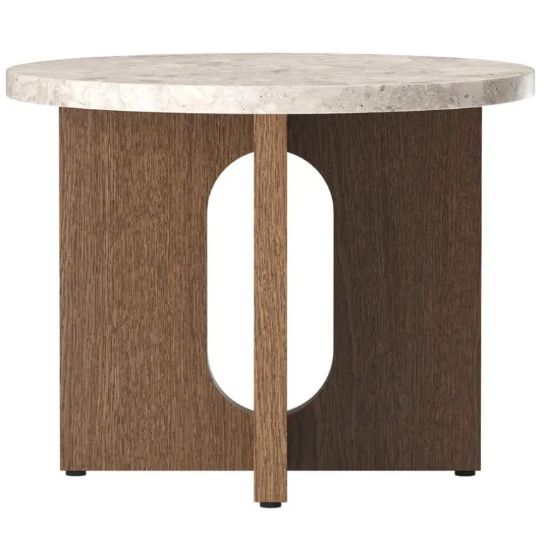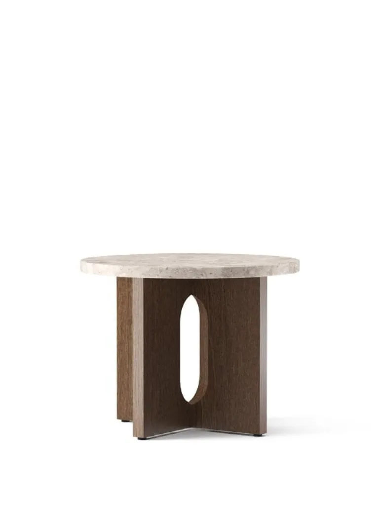 Audo Copenhagens sidobord Androgyne är en charmig kombination av kontraster. Bordet är tillverkat av ekfaner och unik Kunis Beccia-sten, och spelar med både maskulina och feminina element, som mixen mellan mjukt formade delar och skarpa kanter samt simpla men vågade silhuetter. Danielle Siggerud designade ursprungligen Androgyne-bordet för Menu Space Café i Köpenhamn, och det stilfulla lilla bordet sattes snabbt i större produktion. Androgyne passar bra bredvid fåtöljen, soffan, sängen eller fönstret.