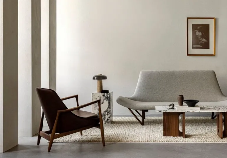 Audo Copenhagens soffbord Androgyne är en charmig kombination av kontraster. Bordet är tillverkat av ekfaner och unik Calacatta Viola-marmor och leker med maskulina och feminina element – som mixen mellan mjukt formade delar och skarpa kanter, och enkla men vågade silhuetter. Danielle Siggerud är formgivaren bakom det harmoniska, stadiga bordet Androgyne som är lika behagligt att se på som att använda. Det eleganta soffbordet är en perfekt partner till soffan men kan lika gärna användas som ett vackert sidobord.