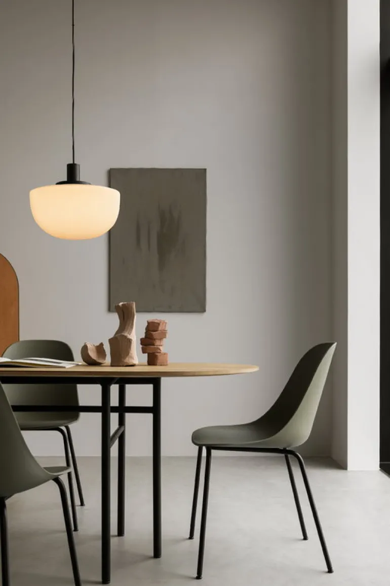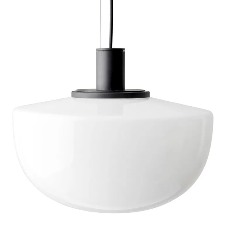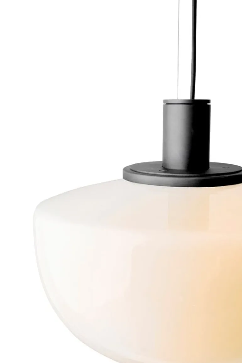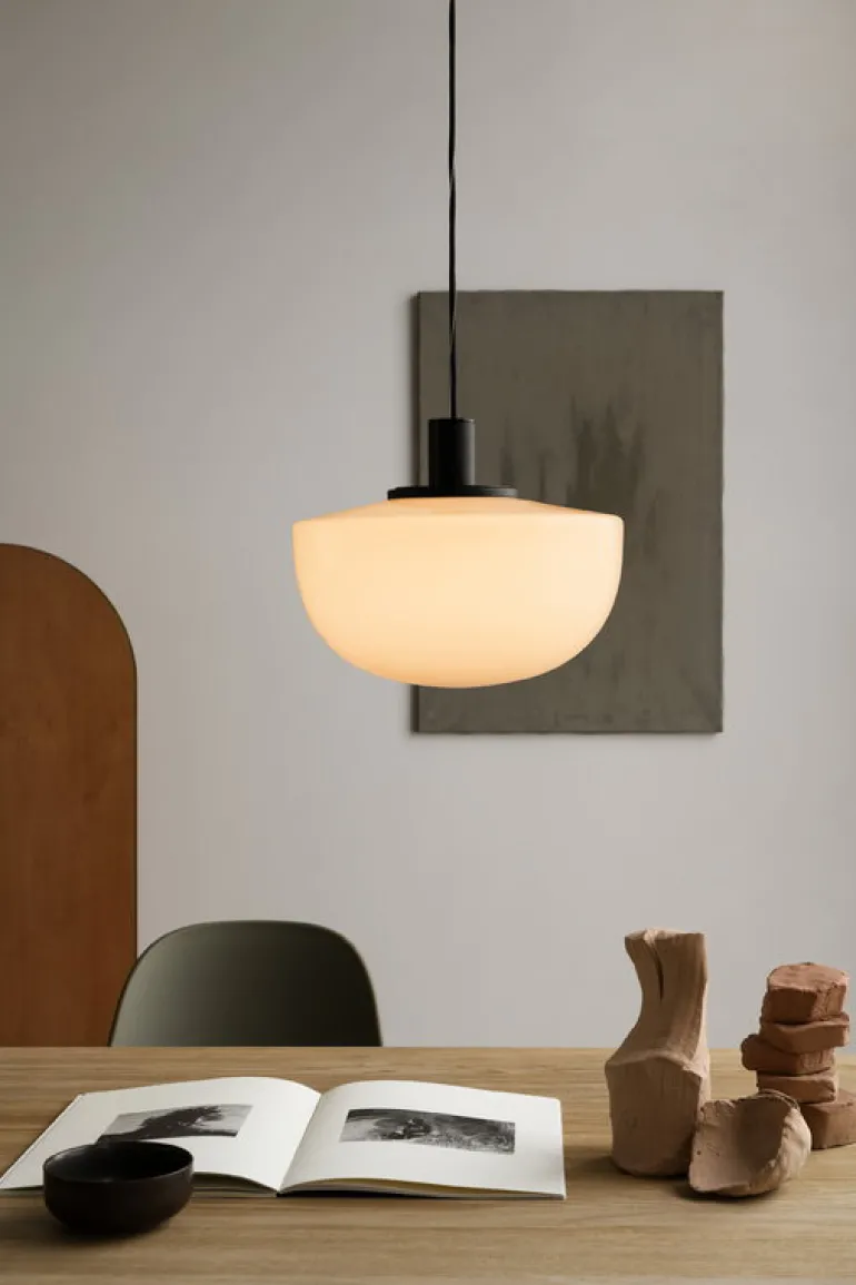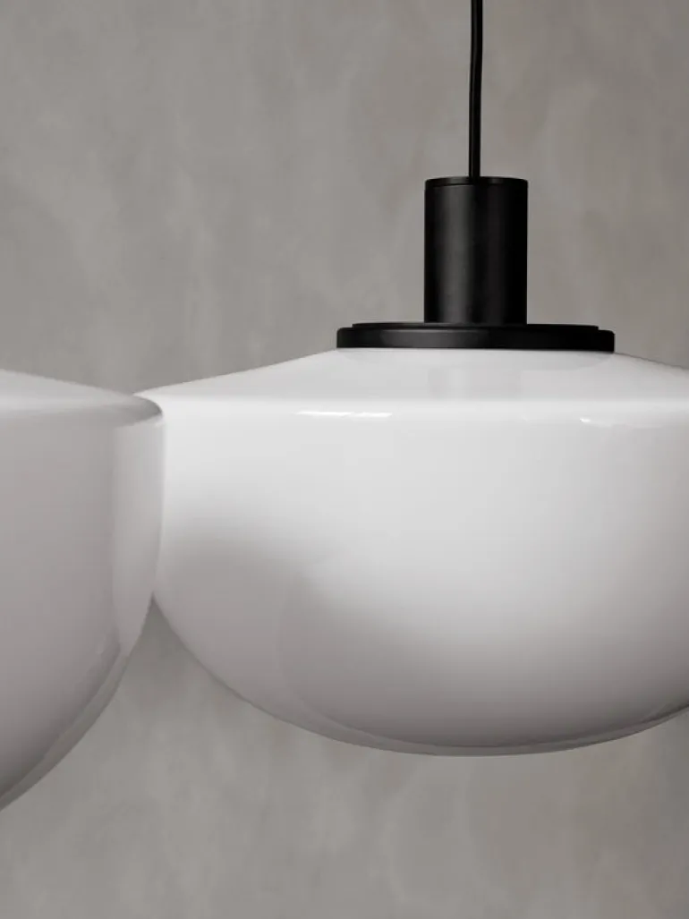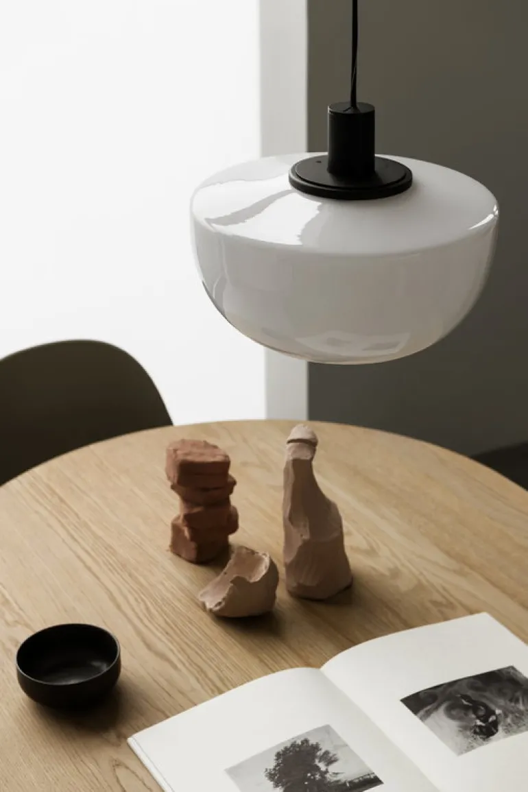 Bank från Audo Copenhagen är en sofistikerad pendellampa som skänker elegans till alla typer av rum med sin vackra kombination av metall och munblåst glas. Pendellampans halvmåneform ger en känsla av elegans från förr – den här formen på lampor var mycket populär på 30-talet. Norm Architects har gjort formen modern, lampan Bank skulle dock se lika bra ut på en gammal bank som på en modern restaurang. Formen är inte bara vacker, den är även praktisk eftersom den gör att ljuset sprids jämnt i rummet.