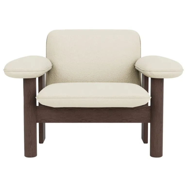 Audo Copenhagens fåtölj Brasilia njuter med sin organiska känsla och mjuka linjer. Designad av Anderssen & Voll, fåtöljen Brasilia har en massiv träram gjord med traditionella snickerier och generös, stoppad dämpning på sitsen och armstöden. Kombinationen av rundade framben och rektangulära bakben ger stolen en snygg geometrisk touch.