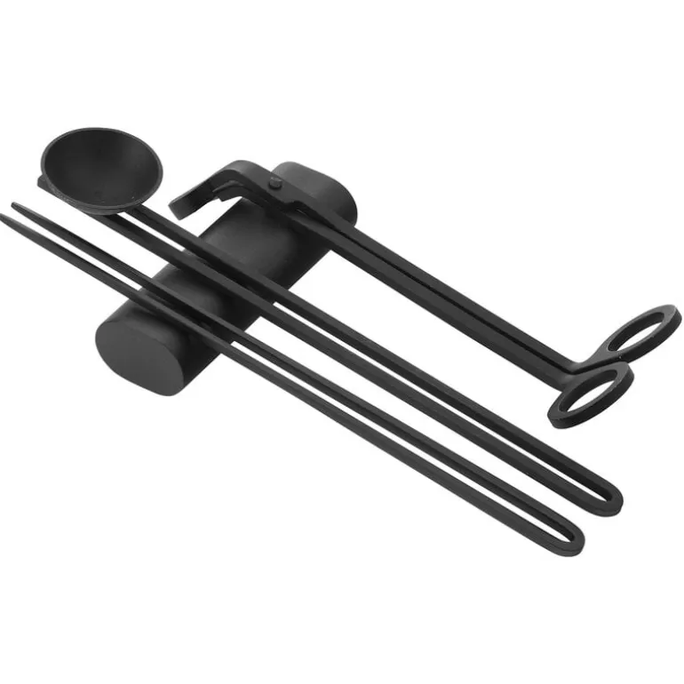 Clip ljustillbehörssetet inkluderar en ljussläckare, en vekeklippare, en pincett för att ta bort bränd veke samt en hållare för att förvara och visa upp föremålen.