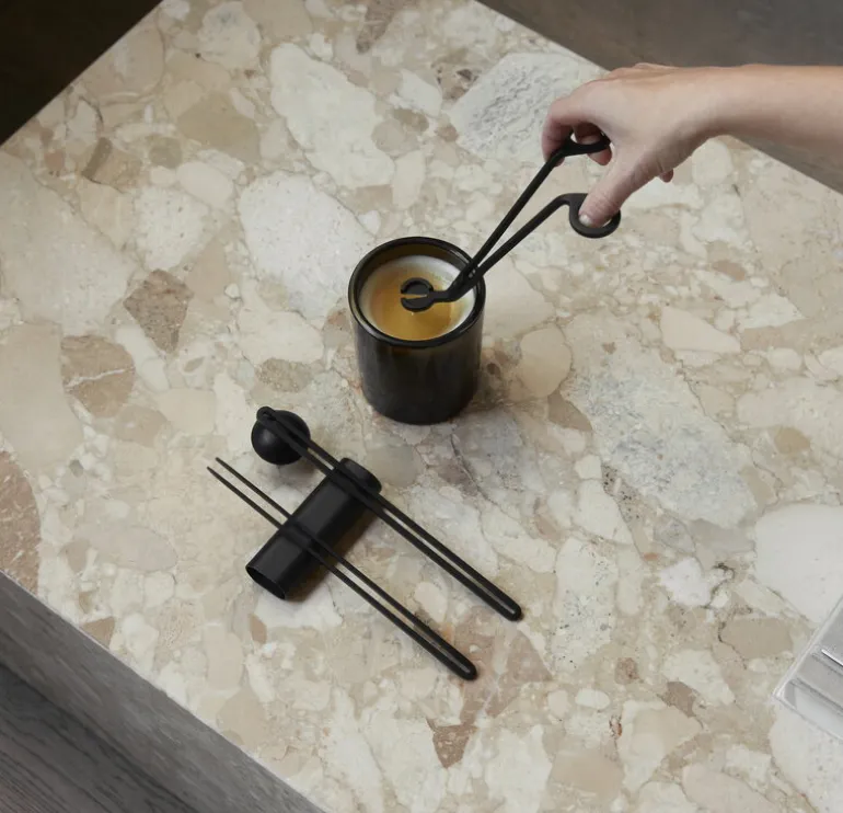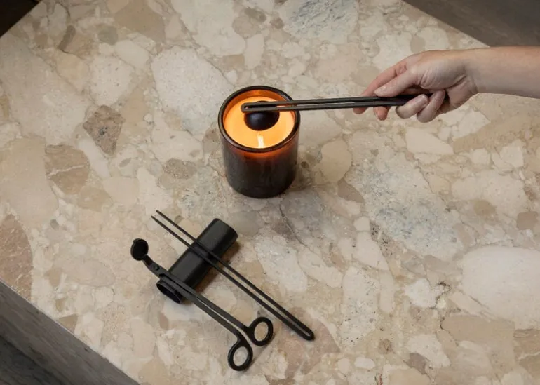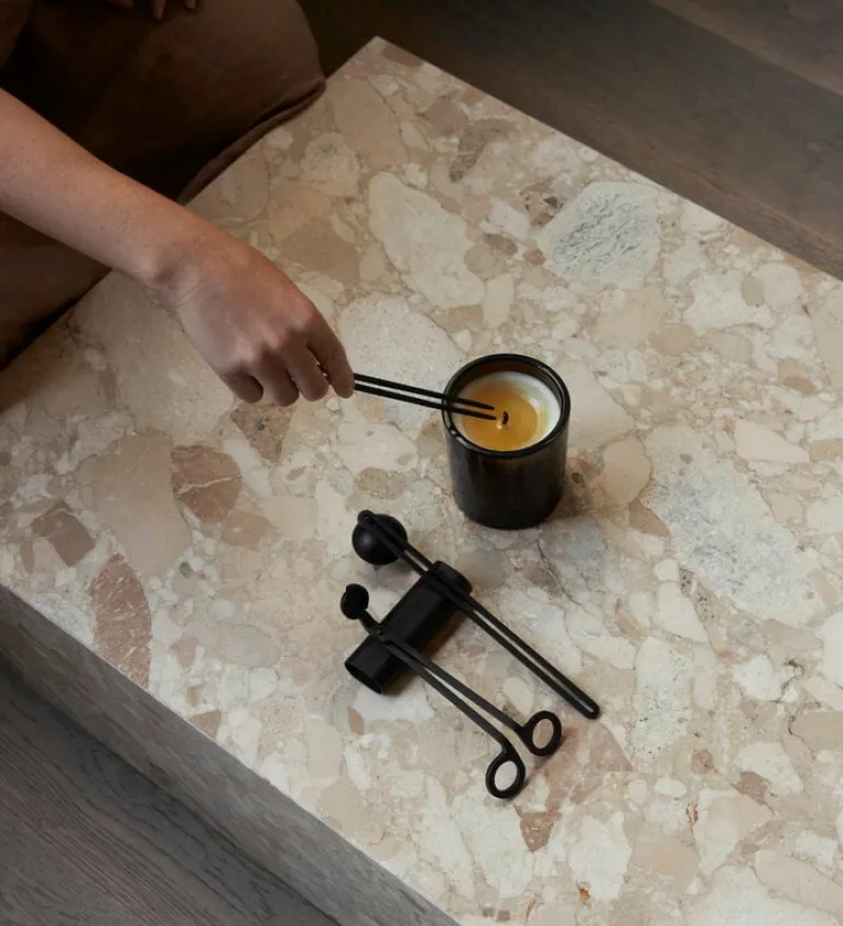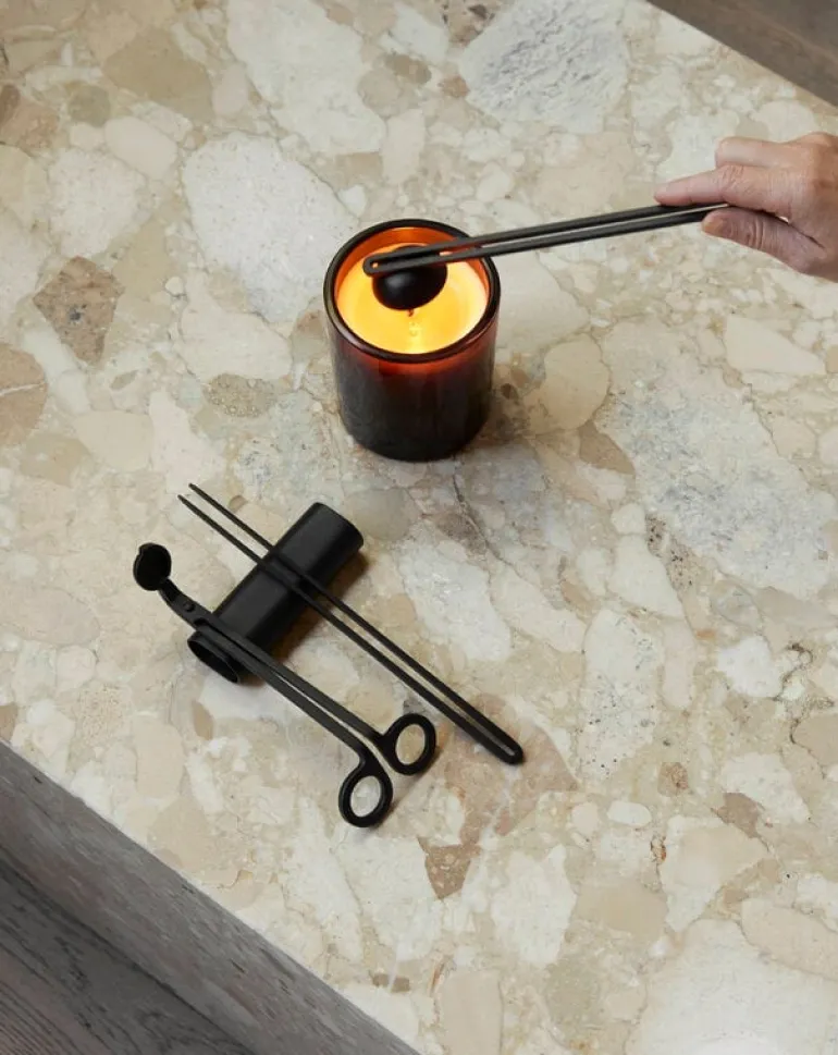 Clip ljusvårdsset från Audo Copenhagen gör användningen av ljus elegant och ansträngningslös. Visste du att du alltid bör klippa veken innan du använder ett ljus och att det bästa sättet att släcka ett ljus är med en ljussläckare?