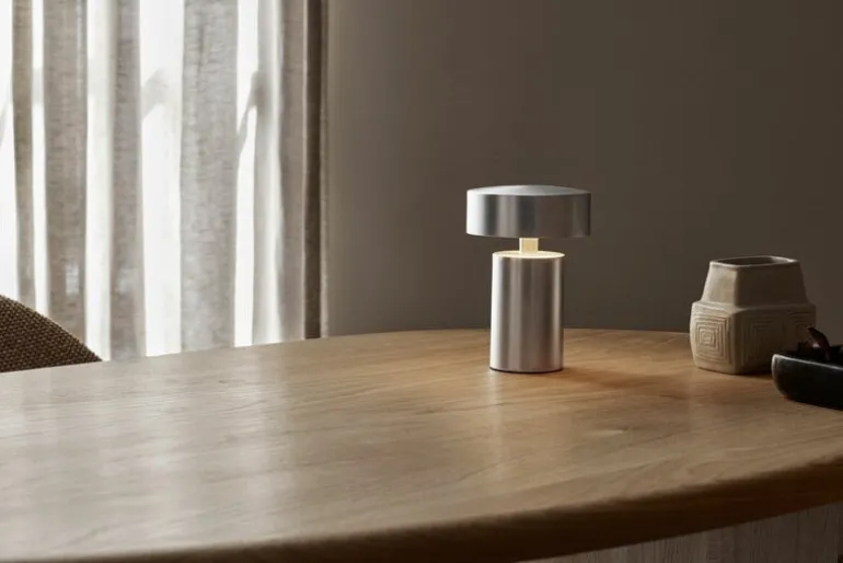 Column Portable är en sladdlös bordslampa som är lätt att placera var du vill, till exempel på matbordet eller i ett rum utan el. Lampan laddas med en USB-kabel och är också kompatibel med Audo Copenhagens laddningsbräda. För längre batterilivslängd rekommenderas det att stänga av lampan när den laddas och att inte lämna den inkopplad medan den används.