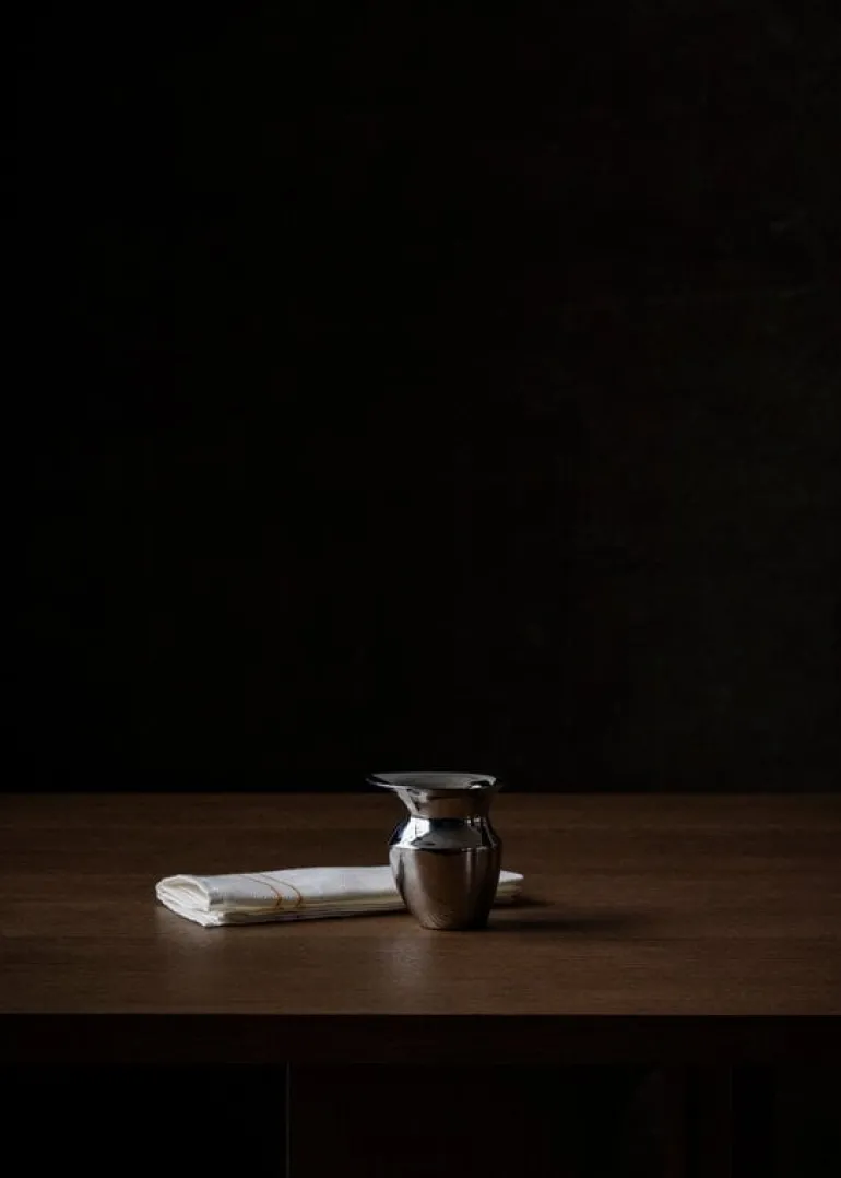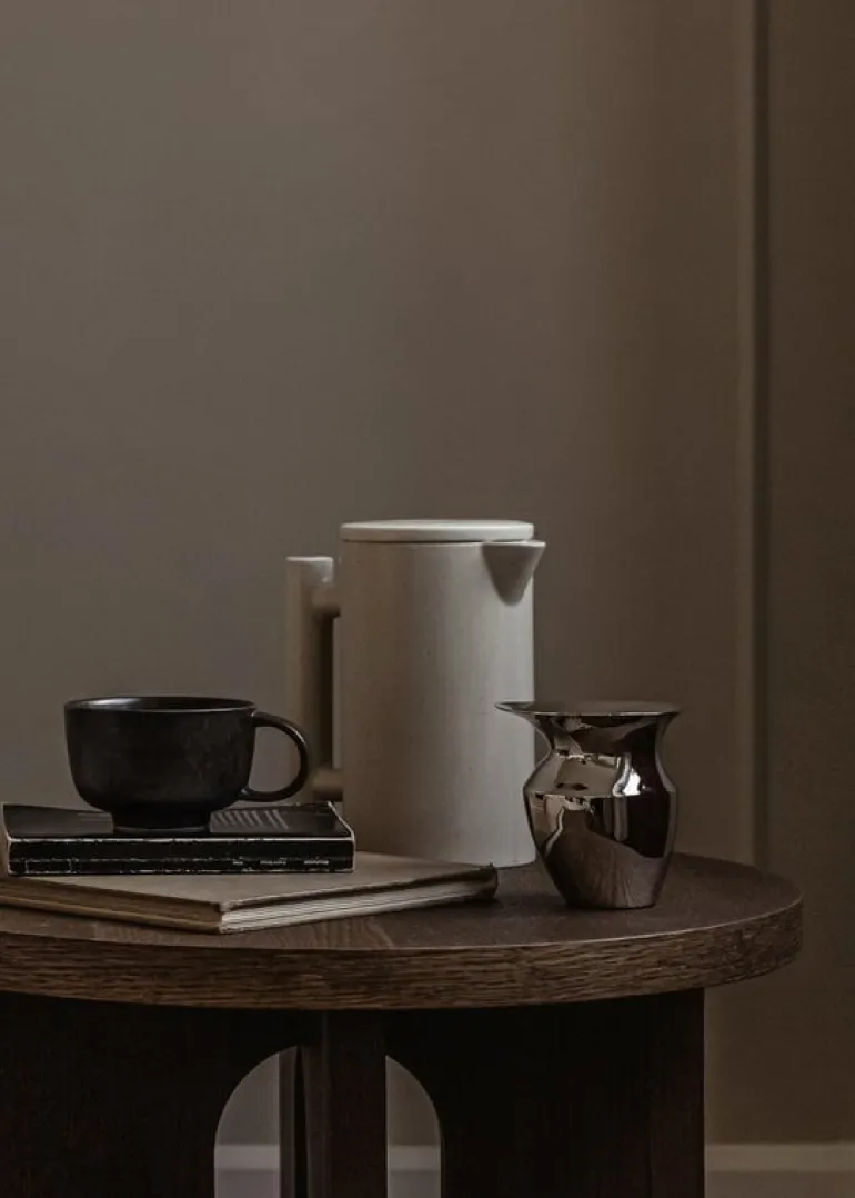Audo Copenhagens charmiga etruskiska kanna tar dig tillbaka – långt tillbaka. Skapad av designduon Mentze Ottenstein, drar den moderna, minimalistiska stålkannan inspiration från etruskisk keramik och klassisk romersk design. Den vackra, lilla kannan är särskilt designad för enkel upphällning och fungerar bra som en mjölkkanna, till exempel, men den kan också användas som en liten vas eller dekorativt objekt