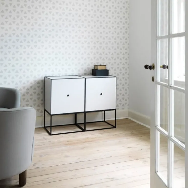 Det funktionella hyllsystemet Frame från Audo Copenhagen består av fyrkantiga lådor med svarta ramar. Hyllsystemets bas är tillverkad av hållbart, lackerat stål. Skapa ett eget Frame-hyllsystem som passar dina behov – möjligheterna är nästintill obegränsade!