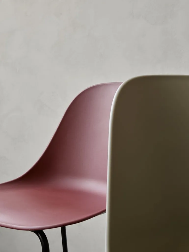 Audo Copenhagens Harbour-barstol, designad av Norm Architects, karaktäriseras av en strömlinjeformad men ändå bekväm design. Harbour är den perfekta stolen för hotell och restauranger såväl som diskar, köksöar och höga skrivbord hemma; dess mjuka flödande skal ger support till kroppen medan den ändå är bekväm och stången mellan de smala benen hjälper dig att sitta rätt. Harbour är en kontemporär blandning av geometriska och organiska former och fungerar som en distinkt barstol både i hem och allmänna utrymmen.