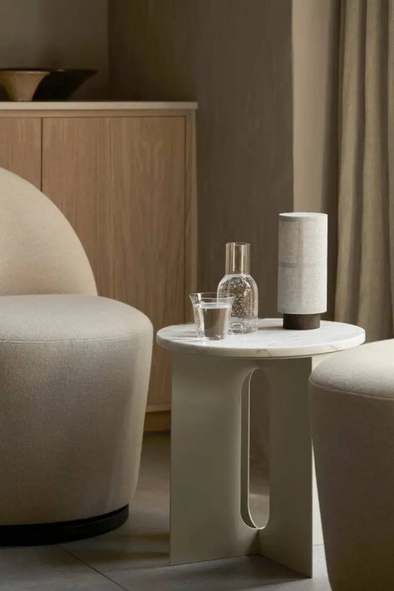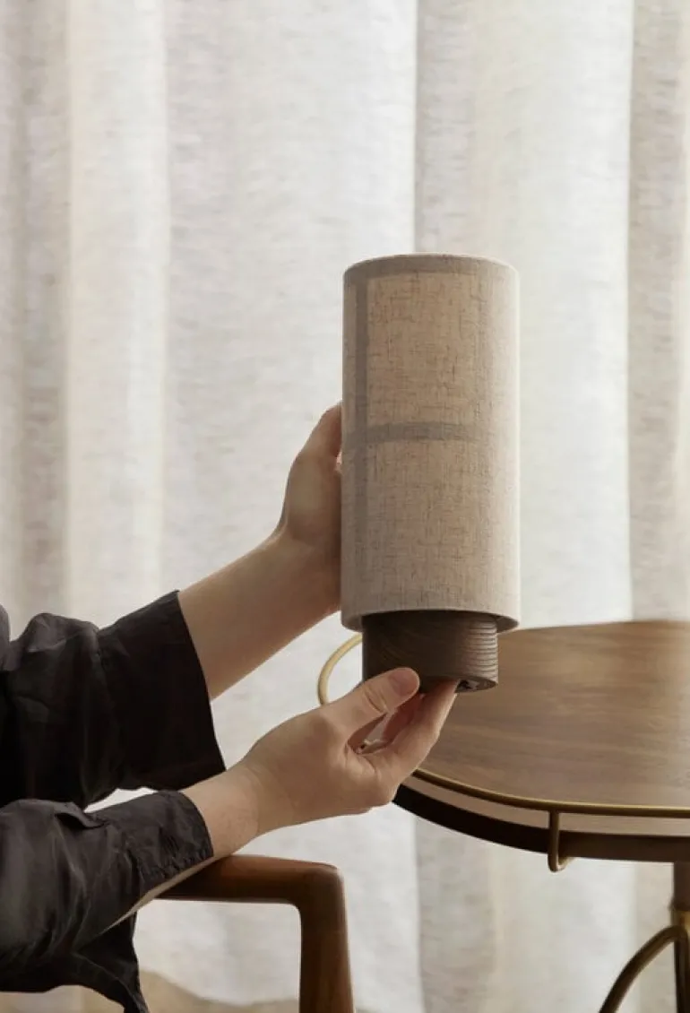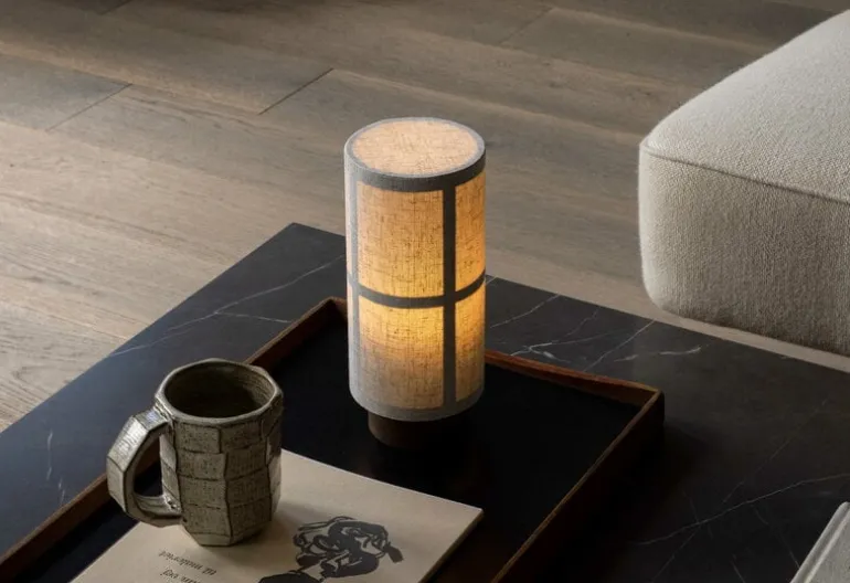 Audo Copenhagens bärbara bordslampa Hashira är en modern, avskalad tolkning av en traditionell japansk rispapperslykta av designduon Norm Architects, Kasper Rønn och Jonas Bjerre-Poulsen. Den minimalistiska skärmen tillverkad av ett rått linne skapar en intressant motsättning: samtidigt som den ger armaturen dess skulpturala, kolumnliknande form tillsammans med den synliga strukturen, sprider den också ljuset till en ovanligt mjuk och stämningsfull glöd. Den eleganta, nedtonade formen på Hashira-bordslampan passar lika perfekt i sovrummet eller vardagsrummet som den gör i offentliga utrymmen – den uppladdningsbara bordslampan är lätt att flytta från rum till rum, och ger en mysig glöd där du behöver den mest. En tredjedels dimmer hjälper dig att justera ljusmängden för att passa varje situation, utrymme och stämning.