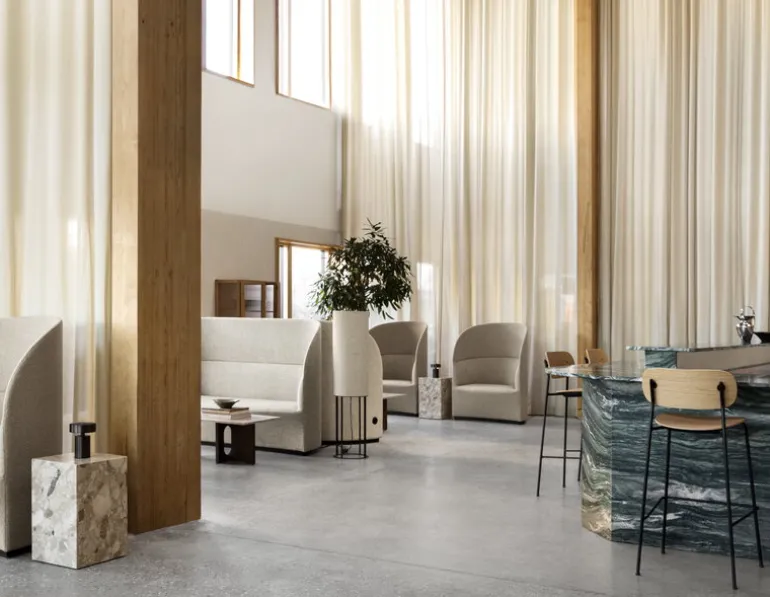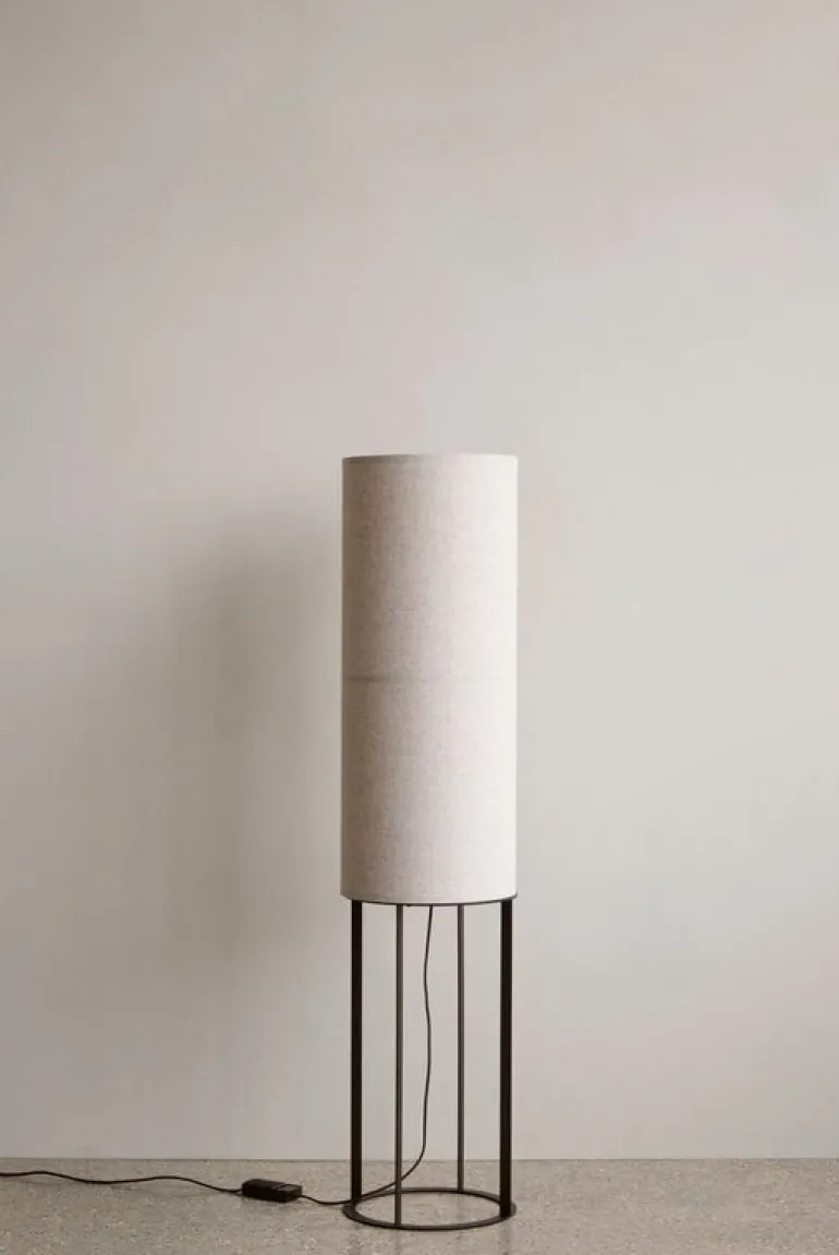 Audo Copenhagens golvlampa Hashira är en modern, avskalad tolkning av en traditionell japansk rispapperslykta av designduon Norm Architects, Kasper Rønn och Jonas Bjerre-Poulsen. Den minimalistiska skärmen gjord av linne skapar en intressant motsättning: samtidigt som den ger armaturen dess skulpturala, kolumnliknande form tillsammans med den synliga strukturen, sprider den också ljuset till en ovanligt mjuk och stämningsfull glöd. Den eleganta, återhållsamma formen på golvlampan Hashira passar lika perfekt i sovrummet eller vardagsrummet som den gör i offentliga utrymmen.