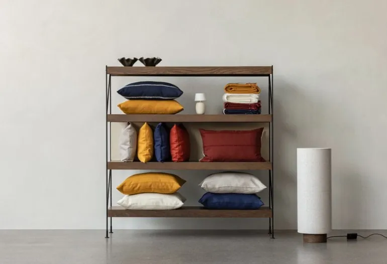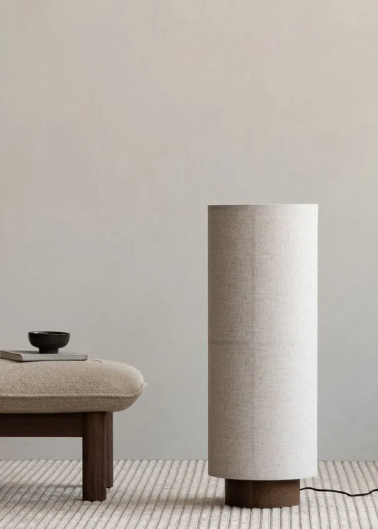Audo Copenhagens golvlampa Hashira är en modern, avskalad tolkning av en traditionell japansk rispapperslykta av designduon Norm Architects, Kasper Rønn och Jonas Bjerre-Poulsen. Den minimalistiska skärmen gjord av linne skapar en intressant motsättning: samtidigt som den ger armaturen dess skulpturala, kolumnliknande form tillsammans med den synliga strukturen, sprider den också ljuset till en ovanligt mjuk och stämningsfull glöd. Den eleganta, nedtonade formen på Hashira golvlampa passar lika perfekt i sovrummet eller vardagsrummet som den gör i offentliga utrymmen.