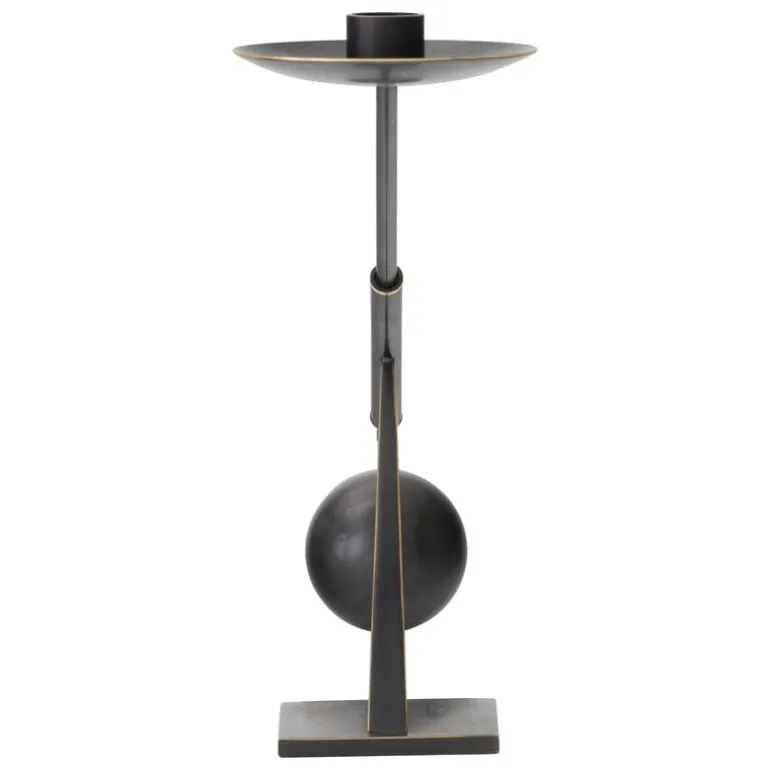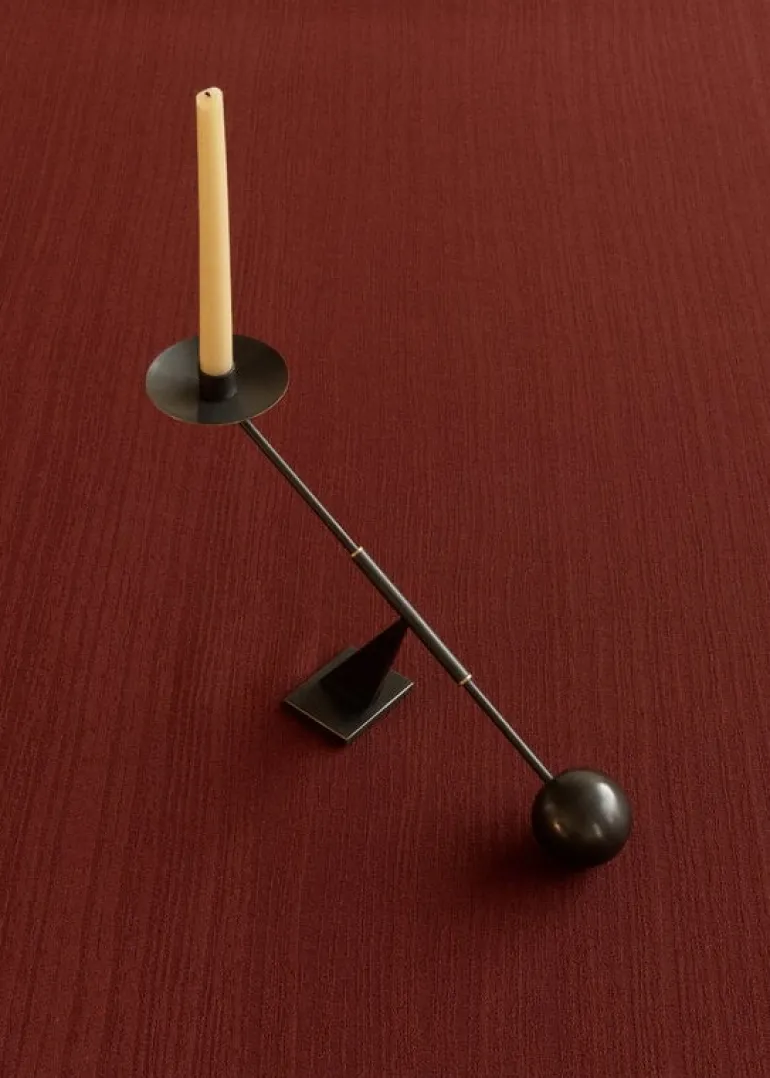 Audo Copenhagens Interconnect ljusstake leker med kontrasterna av enkla geometriska former och överdrivna proportioner. Designad av Colin King, den strömlinjeformade ljusstaken i metall kombinerar runda element med vinklar i olika grader. Interconnect-ljushållaren gör en fantastisk mittpunkt med ett enda avsmalnande ljus, och på grund av sin skulpturala siluett kan den även användas som ett dekorativt föremål även utan ett ljus.