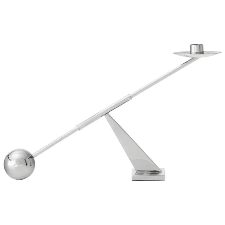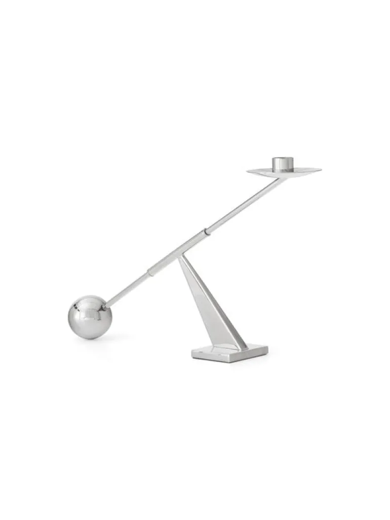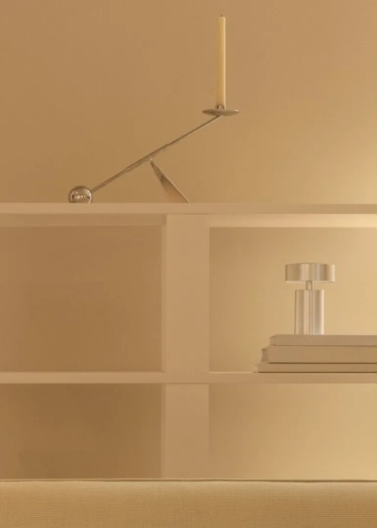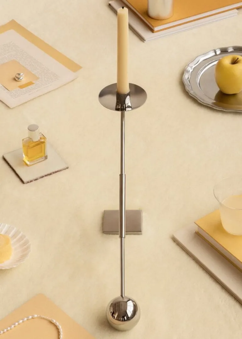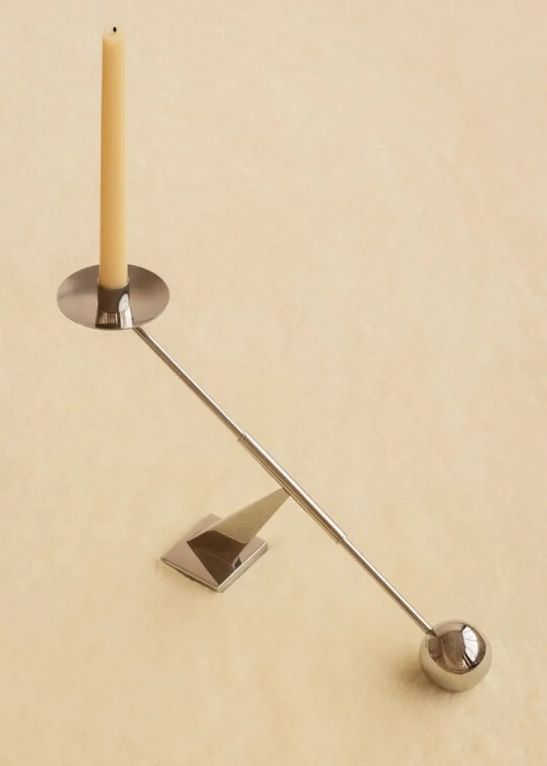 Audo Copenhagens Interconnect ljusstake leker med kontrasterna av enkla geometriska former och överdrivna proportioner. Designad av Colin King, den strömlinjeformade ljusstaken i metall kombinerar runda element med vinklar i olika grader. Interconnect-ljushållaren gör en fantastisk mittpunkt med ett enda avsmalnande ljus, och på grund av sin skulpturala siluett kan den även användas som ett dekorativt föremål även utan ett ljus.