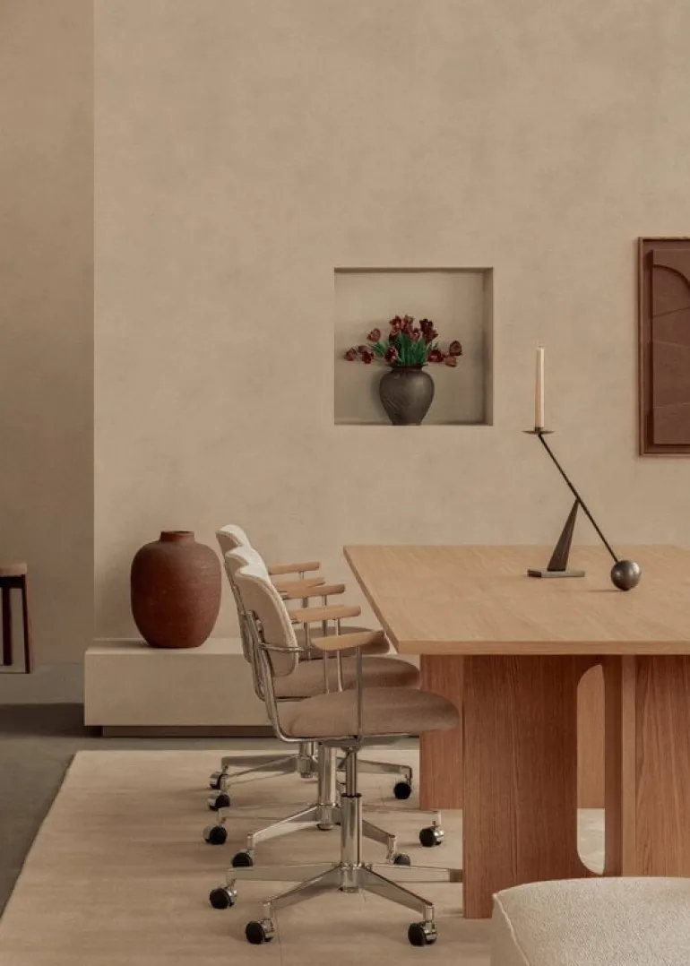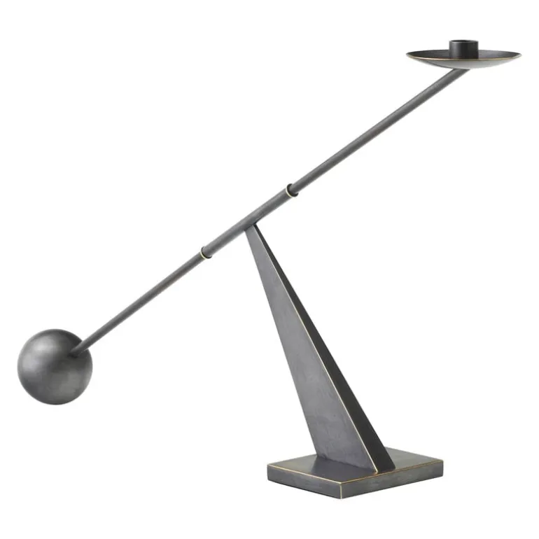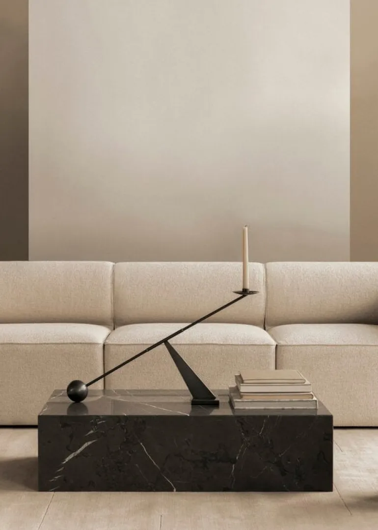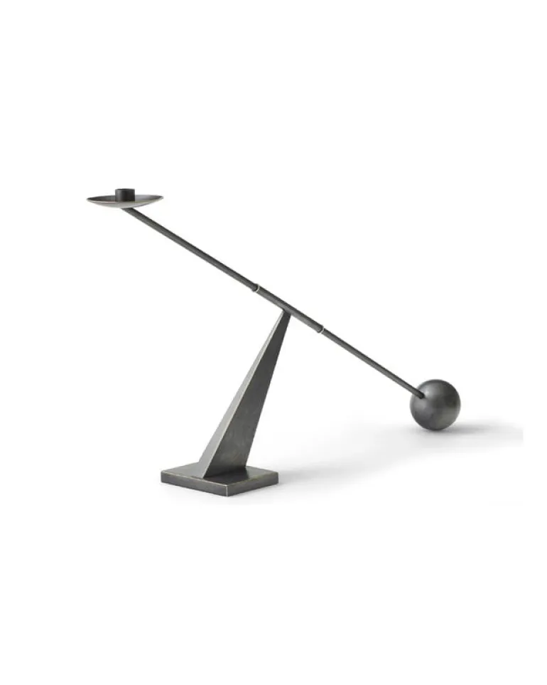 Audo Copenhagens Interconnect-ljusstake leker med kontrasterna mellan enkla geometriska former och överdrivna proportioner. Den strömlinjeformade metalljusstaken är designad av Colin King och kombinerar runda element med vinklar av varierande grad. Interconnect-ljusstaken blir ett fantastiskt blickfång med ett enda stearinljus, och tack vare sin skulpturala silhuett kan den också användas som ett dekorativt föremål även utan ljus.